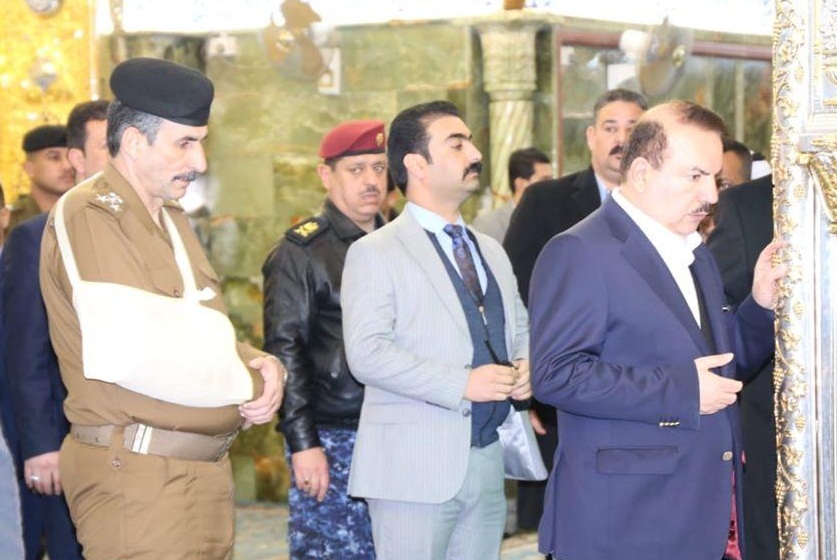 ونشرت مديرية شرطة النجف صوراً يظهر فيها الفتلاوي مصاباً بذراعه الأيمن خلال استقباله وزير الداخلية ياسين الياسري الذي وصل المحافظة مساء الاربعاء للوقوف على أحداث التظاهرات والاشتباكات التي شهدتها المدينة أمس.