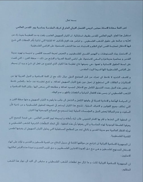 القنصل الايراني في كربلاء ينتقد بعض الدول العربية لتجسيدها اهداف الكيان الاسرائيلي بالمنطقة