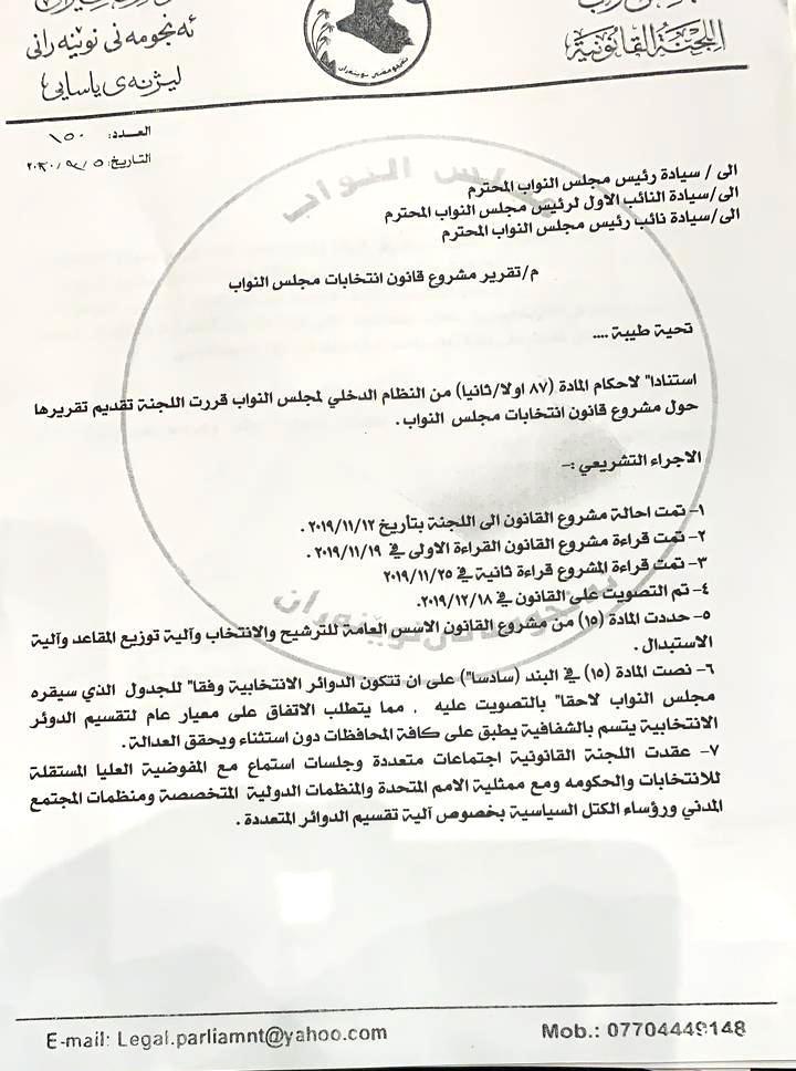 بالوثائق.. تقرير اللجنة القانونية بشان مشروع قانون انتخابات مجلس النواب السبت 05 ايلول 2020 سياسية 3,349 مشاهدة بالوثائق.. تقرير اللجنة القانونية بشان مشروع قانون انتخابات مجلس النواب تنشر وكالة نون الخبرية، تقرير اللجنة القانونية بشان مشروع قانون انتخابات مجلس النواب. كلمات مفتاحية القانون انتخابات اللجنة القانونية النواب مجلس النواب وكالة نون الخبرية انتخابات مجلس النواب إنتخابات مجلس النواب التعليقات (0) لا توجد تعليقات بعد. كن أول من يعلق! اسمك البريد الإلكتروني تعليق إرسال التعليق تعليقاتكم والموضوعات الأكثر تداولاً أكثر المواضيع قراءة عرض الكل الأكثر قراءة اليوم الأسبوع الشهر سنة 1 إقتصادية العراق.. أسعار صرف الدولار ترتفع في ختام تعاملات الأسواق بنهاية الأسبوع 575 مشاهدة --منذ 23 ساعة 2 أمن ومجتمع العتبة العلوية المقدسة تنظم حفل التكليف السنوي الثاني عشر بالمعهد التقني في العمارة بمشاركة أكثر من 600 طالبة 515 مشاهدة --منذ 23 ساعة 3 إقتصادية "ستارلينك" الأميركية تبدي استعدادها لتشغيل خدمة الإنترنت الفضائي بالعراق 379 مشاهدة --منذ 23 ساعة 4 مقالات هل توقيت اقامة كاس العرب صدفة ؟ 358 مشاهدة --منذ 18 ساعة 5 اخبار محلية عمره (185) سنة.. العتبة الحسينية ترمم منبر خطابة أهداه لها رئيس الوزراء "القاجاري" 354 مشاهدة --منذ 21 ساعة 1 إقتصادية ارتفاع أسعار صرف الدولار في العراق 2171 مشاهدة --السبت 06 كانون الأول 2025 2 إقتصادية تعرف على أسعار صرف الدولار أمام الدينار العراقي 2129 مشاهدة --الخميس 04 كانون الأول 2025 3 تقارير مليونا عاطل في العراق: العمالة الأجنبية تفاقم أزمة البطالة.. هل ضاعت فرص الشباب؟ 2023 مشاهدة --الأثنين 08 كانون الأول 2025 4 تحقيقات عائلة مسيحية تطرق باب الامام الحسين .. العتبة الحسينية تعالج سيدة مسيحية من امراض عدة مجانا 1842 مشاهدة --الجمعة 05 كانون الأول 2025 1 سياسية نتائج اولية :الفائزون في مقاعد مجلس النواب بكربلاء المقدسة 8648 مشاهدة --الأربعاء 12 تشرين الثاني 2025 2 سياسية بالارقام: النتائج الأولية للتصويت بالانتخابات النيابية في محافظة نينوى 6830 مشاهدة --الثلاثاء 11 تشرين الثاني 2025 3 اخبار محلية اسماء جديدة تشكل 11 فائز بانتخابات 2025 في محافظة كربلاء المقدسة 4499 مشاهدة --الخميس 13 تشرين الثاني 2025 4 سياسية مجلس بغداد يُفعّل نظام التوصيل المنزلي للنفط الأبيض 4199 مشاهدة --الخميس 20 تشرين الثاني 2025 5 سياسية وكالة نون تنشر النتائج الاولية للقوائم الانتخابية الفائزة في محافظة واسط 3941 مشاهدة --الأربعاء 12 تشرين الثاني 2025 6 منوعة طقس العراق.. أمطار رعدية وانخفاض في درجات الحرارة 3813 مشاهدة --الجمعة 14 تشرين الثاني 2025 1 اخبار محلية خلال زيارته لمشروع صحن العقيلة.. ممثل السيد السيستاني يوعز بتخصيص مساحة (5) الاف متر على اسطح البنايات للزائرين 18536 مشاهدة --السبت 13 ايلول 2025 2 سياسية مكتب السيد السيستاني ينشر إمساكيات شهر رمضان المبارك للمحافظات العراقية لعام 1446هـ (2025م) 13799 مشاهدة --الأربعاء 19 شباط 2025 3 لقاءات *محمد الصواف: عدسة توثق الحقيقة وتنقل قصص الإنسانية في قلب الأزمات* 12444 مشاهدة --الأحد 30 آذار 2025 4 لقاءات منها الخاصة وفوق الكبرى والكبرى.. حيدر زيني.. طبيب أجرى (51) عملية في (28) ساعة متواصلة بمستشفى السفير 11024 مشاهدة --الثلاثاء 27 آيار 2025 5 اخبار محلية كربلاء تحدد تسعيرة "أمبير" المولدات الأهلية لشهر حزيران 2025 9647 مشاهدة --الثلاثاء 27 آيار 2025 6 تحقيقات بينَ زَخَّاتِ الرَّصاصِ وَدُموعِ الأهلِ.. قِصةُ شهيدٍ كَتبَتْ كربلاءُ خاتِمَتَهُ 9075 مشاهدة --الأربعاء 02 نيسان 2025 آخر التعليقات 1 خضر عباس لعساف التعليق : بعلبك حي الشراونه ... الموضوع : العتبة العلوية المقدسة تنظم حفل التكليف السنوي الثاني عشر بالمعهد التقني في العمارة بمشاركة أكثر من 600 طالبة 2 مجدي علي طه التعليق : اجركم ع الله بس انا ببعلبك منطقة طيبة فوق بجبل ماعم اشوف شي ورابط بقلي ... الموضوع : الوجبة الثالثة من المساعدات الانسانية... العتبة الحسينية تجهز (150) عائلة سورية نازح