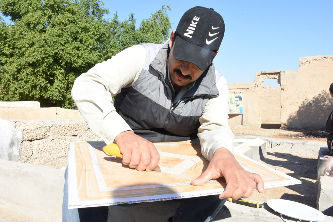 وأوضح أن "الاعمال تشمل تغليف الارضية بمادة (الگرانيت) ومادة (البورسلين)، إضافة إلى تغليف السقف بالديكور الحديث (السقوف الثانوية) مع تزين الجدران".