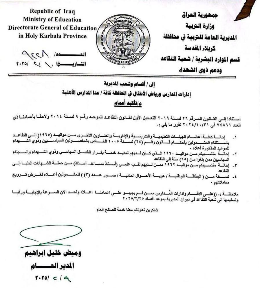 وحسب الإعمام، ستبدأ الوزارة باتخاذ الإجراءات اللازمة لإحالة عدد من العاملين في الوظائف التربوية إلى التقاعد وفقا للضوابط القانونية المعمول بها.