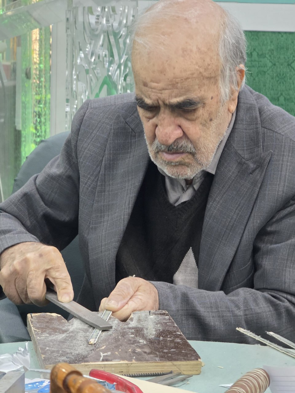 واضاف ان "الميزة الاخرى التي يتميز بها هذا المنبر انه صنع بطريقة لم يستعمل في مسمار واحد، بل اعتمد في طريقة صناعته ما سمى بـ"التعشيق" او التركيب اي اشبه بما يسمى اليوم بلعبة "الميكانو"، وهذا الامر يعطي ميزة تفكيكه وتركيبه ونقله، لاسيما ان البناء القديم للعتبة الحسينية كان يضم دهاليز وابواب ضيقة وتصعب معه عملية الصعود والنزول، ويصعب معها ادخال مثل هذا المنبر بقياساته المصنوع منها"، منوها الى ان" الشروع باعادة ترميم وصيانة المنبر بدأ في العام (2015) لاننا لم نكن نمتلك الخبرات الكافية كونه صناعة وحرفة غير عراقية، وهو فن ايراني كان معمول به منذ زمن الدولتين القاجارية والصفوية ولغاية يومنا هذا، وكنا نبحث عن شخص خبير ومهاري يساعدنا في اعادة وترميم هذا المنبر ووجدنا الخبير الايراني المخضرم وشيخ المهنة "سامي صفر قهرمان" الذي يتجاوز عمره (85) عاما، وما ان تلقى دعوتنا حتى رمى مرضه والصعاب التي تواجهه خلف ظهره وجاء لخدمة حرم الامام الحسين (عليه السلام)، وبالفعل تعرض الى وعكة صحية في بداية العمل وتجاوزها، وباشر معنا قبل (11) عاما كون العمل يجري على مراحل، والنقوش الموجود على المنبر لا يوجد مثلها في زماننا الحالي، واضطررنا الى استبدالها حيث استخدم في صناعته "عظم العاج" الذي اصبح تحت الحظر الدولي وتمنع المتاجرة به، فاستبدل بعظم الابل الذي هو اشبه بعظم العاج، بعد ان يمر بمراحل عدة ليصبح مطابقا لصيانة هذه القطع، واستبدلنا الفضة بمادة الالمنيوم، كما استبدل الذهب بمادة النحاس"، لافتا الى ان" هناك الوان لأخشاب طبيعية غير موجودة حاليا، فقمنا بتلوين الخشب بالوان تطابق الخشب الاصلي حتى باتت لا يمكن التفريق بينها"، مشيرا الى ان "العمل يحتاج الى خمس مراحل ونحن الآن في المرحلة الثانية، ونحتاج الى ثلاث مراحل اخرى ليكتمل العمل"، مؤكدا بالقول ان" فريق الصيانة هم من اصحاب الحرف، ومع اعادة ترميم المنبر التاريخي، فقد اكتسبوا الخبرات من الخبير الايراني "قهرمان"، وسيرى الزائرون الى المتحف العمل المشترك الذي انجز على يد الخبير الايراني وحرفيو الشعبة من صناعة قطع مفقودة وترميم غيرها، ومن المؤمل انجاز ترميم منبر الخطابة القاجاري بالكامل خلال ثلاثة اسابيع وعرضه في المتحف".