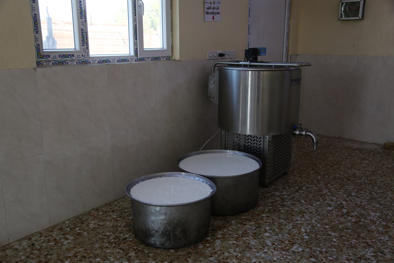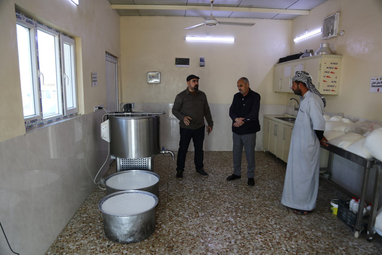 واضاف ان " الشق الثاني يتضمن تطوير عمل مربي الحيوانات حيث شرعت المنظمة بادخال انواع جديدة من البذور العلفية وتوزيعها على المربين لتكون مرحلة ارشادية لهم لاستخدامها في تغذية حيواناتهم وشمل التوزيع (400) مستفيد بواقع دونم واحد لكل مستفيد، كما اقامت المنظمة (10) مدارس حقلية للرجال بواقع (20) مستفيد في كل مدرسة لتدريبهم على عمليات زراعة هذه المنتوجات"، مؤكدا ان" المنظمة وزعت مادة "المولاس" وهو احد المكملات الغذائية المهمة لدعم الحديقة الحيواني التي تساعد في تحسين كفاءة الاعلاف وزيادة الانتاج كما ونوعا، حيث قامت المنظمة بتوزيع اكثر من (85) طن من مادة المولاس في محافظة كربلاء وانتفع منها اكثر من (1300) مستفيد من مختلف مناطق المحافظة المتخصصة بصناعة الحليب وتربية الماشية مثل مناطق الجدول الغربي، والخيرات، والهندية، واصبح المربي يبحث عن مادة المولاس التي اصبحت انتاجا محليا من المخلفات الثانوية لعملية صناعة السكر داخل معامل عراقية، وخاصة في معمل سكر الاتحاد في محافظة بابل، وفيما يخص تأهيل عمليات تصنيع الحليب فلم تكن هناك قناعة في بداية الامر لدى المصنعين بامكانية جهة حكومية باقامة مثل تلك المراكز، وبعد انشاء هذا المركز وتجهيزه باحدث الاجهزة والمعدات وتطبيق المعايير الدولية للمنظمة والتي تقوم بزيارات ميدانية وتتأكد من تطبيق جميع المعايير المطلوبة وترشيح الاسماء التي تنطبق عليها تلك المعايير من قبل الشعب الزراعية ومديرية الزراعة اصبح الطلب عليها كبيرا، وثبت لدينا انها تجربة ناجحة واشادت بها جميع الجهات المعنية"، مشددا على ان" المشاريع الاربعة المتبقية سيتم تنفيذها قبل انتهاء مدة المشروع في العام (2026)، وهذا النجاح يفتح الافق على تنفيذ مشاريع جديدة اخرى، حيث سبق لنا ان نفذنا مشروع في العام (2021) يخص المكملات العلفية "المولاس" وكان نجاحه مو الممهد لتنفيذ المشروع الحالي".