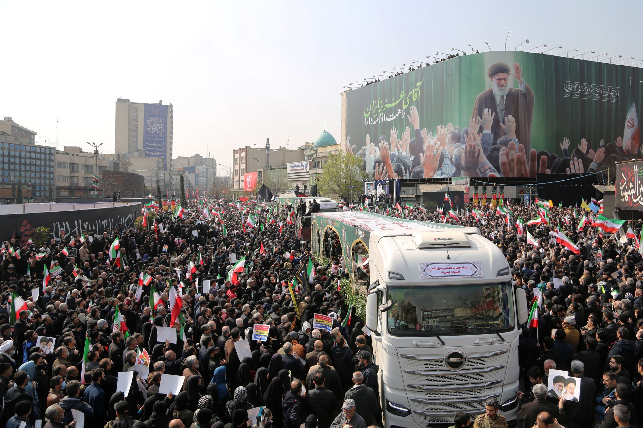 ووصلت إلى ساحة الثورة جثامين كل من، رئيس الأركان العامة عبد الرحيم موسوي، والقائد العام للحرس الثوري محمد باكبور، والأمين العام لمجلس الدفاع علي شمخاني، ورئيس الدعم اللوجستي للقوات المسلحة عزيز ناصر زاده، واللواء محمد شيرازي، الأمين العام لمكتب المرشد الإيراني.