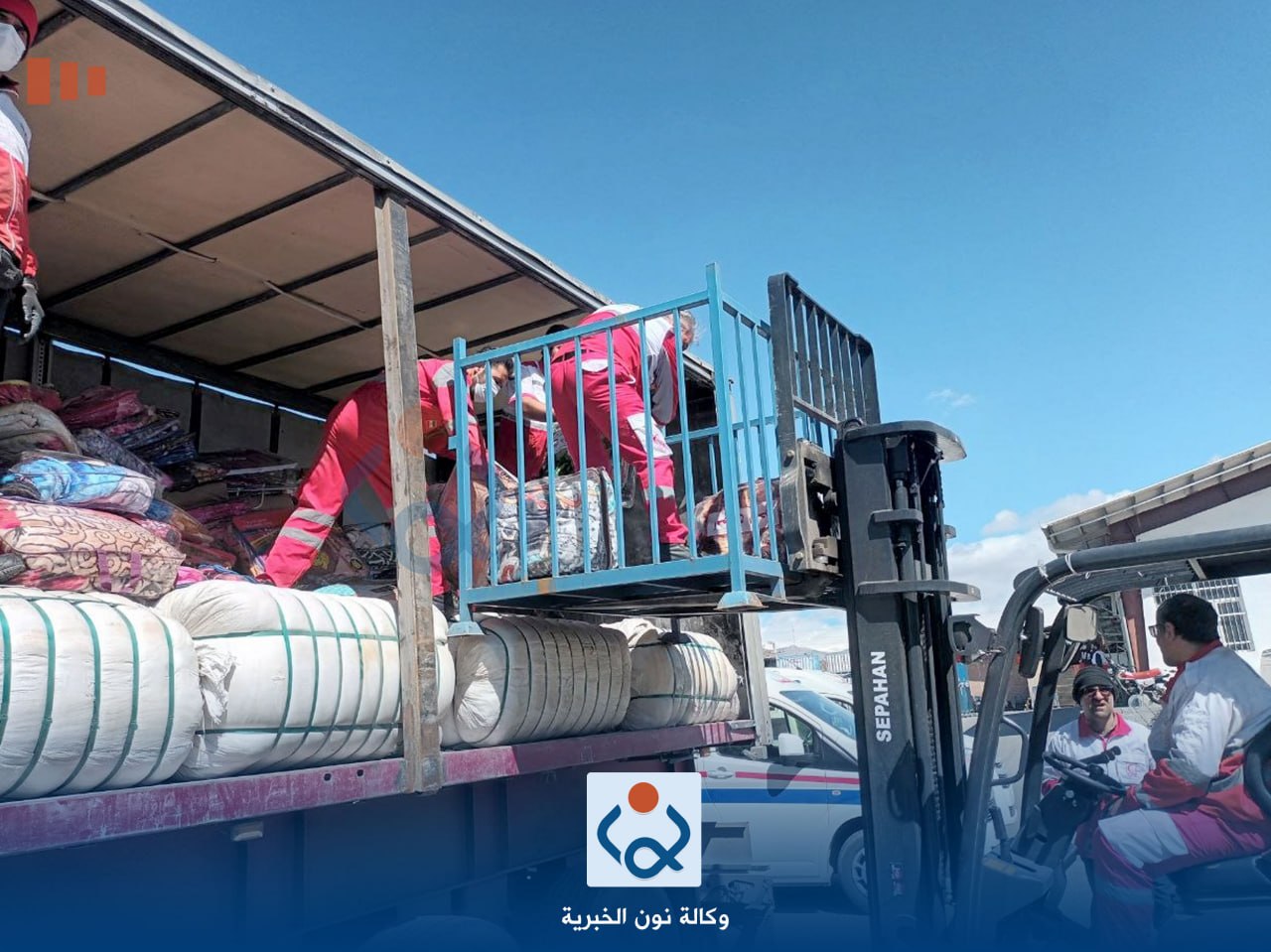 وقال معاون رئيس قسم العلاقات العامة في العتبة الحسينية المقدسة احمد حسن فهد في تصريح خص به وكالة نون الخبرية، ان "الوفد الاغاثي لبى نداء المرجعية الدينية المتمثلة بالسيد علي السيستاني في إغاثة الشعب الإيراني وبناء على توجيهات المتولي الشرعي للعتبة الحسينية المقدسة الشيخ عبد المهدي الكربلائي انطلقت قافلة المساعدات الطبية والاغاثية والعينية من مدينة كربلاء المقدسة الى الشعب الإيراني وعند منفذ مهران استقبلت جمعية الهلال الأحمر الإيراني القافلة وقدمت لها مختلف المساعدات التي سهلت مرورها في مدن إيرانية عدة لغاية وصولها الى العاصمة طهران وهي تحمل الأجهزة الطبية المعدات والمستلزمات الصحية واللوجستية، حتى وصلت الى مخازن جمعية الهلال الأحمر الإيراني ليتم تفريغها".