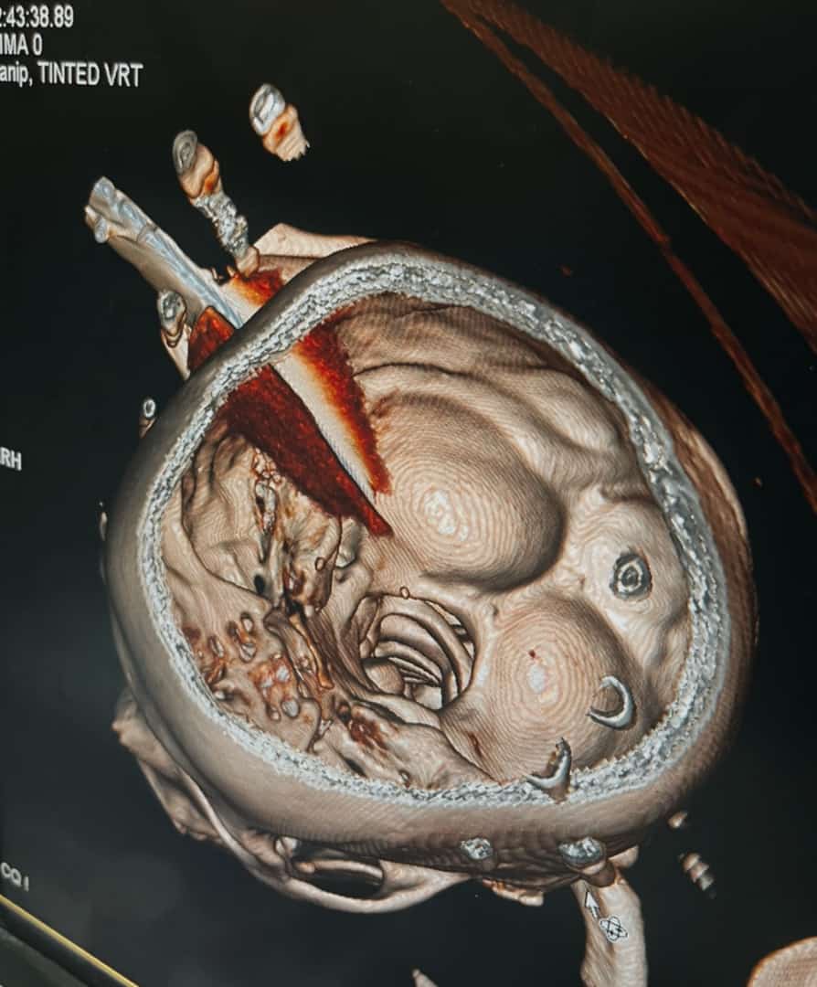 وذكر إختصاصي الجملة العصبية ، الدكتور حسن الياس ، لوكالة نون الخبرية إن " الشخص المُصاب ذو الـ ( 32 ) عاماً ، جرى إستقباله في قسم الطوارئ وهو بحالةٍ حرجةٍ جداً وفاقداً للعلامات الحيوية ، وكان ينزفُ دماً بعدما تلَقى عدّة طعنات نافذة أخطرها تلك التي أصابته على مستوى الرأس وإستقرت في دماغه وأحدثت ضرراً بالغاً ، إضافة إلى " إصاباتٍ أُخرى في الظهر والبطن والصدر " .