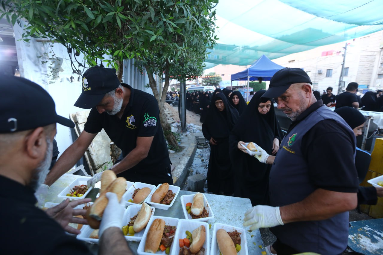 وتنوعت الاطعمة والمشروبات التي تقدت للزائرين بين الاكلة الكربلائية المشهور "التمن والقيمة"، والسندويجات، وكبة البرغل، والبرياني، والتمن مع الفاصولية او الباذنجان، والشارومة، والكباب بنوعيه المصنوع من اللحم او الدجاج، والبيتزا، وغيرها من الاكلات اللذيذة التي توافق ذائقة الزائرين، كما وزعت المواكب اقداح الماء البارد واقداح عصائر مختلفة، وكذلك قدمت عصائر الرمان، والفسنجون، والشاي، والقهوة، واللبن، وجميع تلك الاطعمة والمشروبات التي يقدمها اهالي كربلاء المقدسة ومواكبهم وهيئاتهم وتكياتهم باعتبارهم المتصدين لتقديم الخدمة للزائرين في الايام العشرة الاولى من شهر محرم الحرام تساهم في اعطاء طاقة تحمل للزائرين لاداء شعائر الزيارة وحضور المجالس والمشاركة في مواكب اللطم والزنجيل.