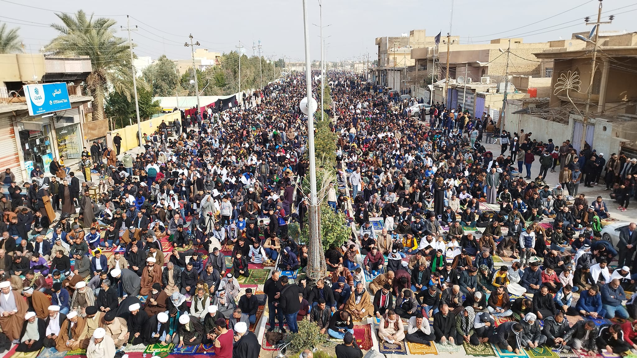 اقيمت في قضاء الحر غربي كربلاء ضهر اليوم صلاة جمعة موحدة لانصار التيار الصدري