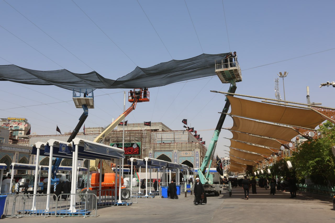 واوضح ان "القسم كان له بصمة في ليلة تبديل الراية السوداء حيث اقيمت المراسيم لاول مرة خارج الحرم الحسيني امام باب القبلة، وتمكنت ملاكاتنا الهندسية والفنية وبمدة قياسية من تصميم وتنفيذ وتركيب المنصة الرئيسية الخاصة، اضافة الى منصات اخرى ساندة خاصة بشاشات العرض التلفزيوني الكبيرة، ونصب "CAMERA CRANR" الخاص بالتصوير لقناة كربلاء الفضائية، وقبل يومين اوعز المتولي الشرعي للعتبة الحسينية المقدسة الشيخ "عبد المهدي الكربلائي" بضرورة تظليل الطرق والممرات التي سيسلكها المشاركون في ركضة طويريج خلال توجههم نحو الحرم الحسيني المقدس، وتبدأ من شارع الامام علي (عليه السلام) من ساحة البلوش نحو عارضة القبلة الرئيسية ثم تنقسم الى محورين، وبعدها تنقسم الى ثلاث محاور باتجاه ابواب القبلة والرجاء والزينبية الذي سينقسم هو الآخر ايضا الى محورين، ويبلغ امتداد المساحات الى (700) متر طولا، و(30) الف متر مربع عرضا".
