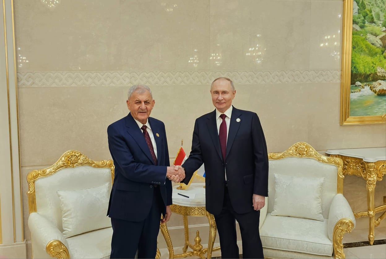 اتفق رئيس الجمهورية العراقي عبد اللطيف جمال رشيد ونظيره الروسي فلاديمير بوتين، اليوم الجمعة، على مواصلة التشاور والتنسيق المشترك لمواجهة التحديات بما يحفظ الاستقرار والسلم الدولي.
