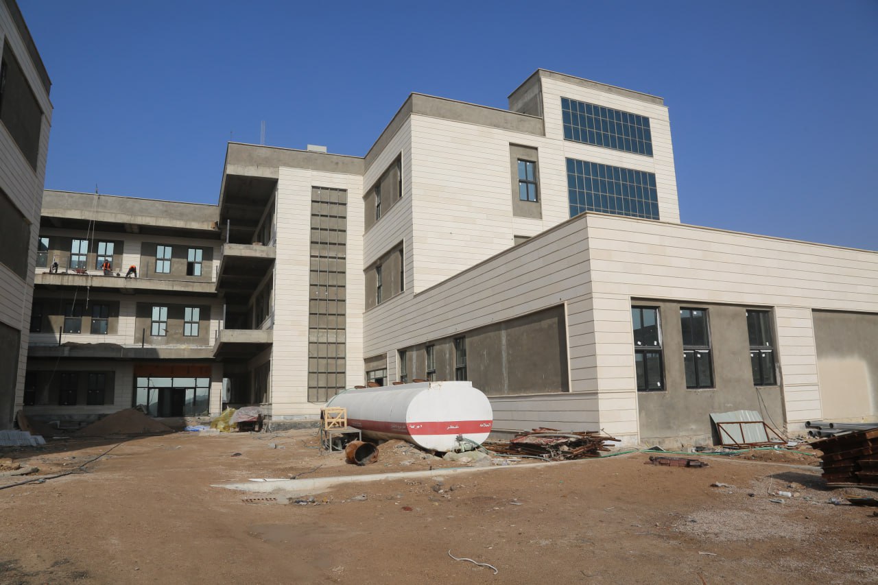 وقال مدير المشروع المهندس علي فياض في حديث لوكالة نون الحبرية ان "المشروع وصل الى مراحل متقدمة من الانجاز تقارب (90) بالمئة من المخطط له، ووصلنا حاليا الى مراحل الانهاءات الداخلية التي انهي بها عمل السقوف الثانوية "الجبسن بورد" وما تبقى هو طلاء السقوف، وانتهت اعمال رصف الارضيات بمادة "البورسلان" و"المرمر" لبعض المناطق، وحاليا يجري العمل في جدران وارضية المسبح الداخلي بسبب اختلاف نوعية مواد "السيراميك" الخاص المستخدم في رصفه، كما يجري العمل في تغليف المرمر لواجهات المصاعد التي تم نصبها وتشغيلها تجريبيا، ولم يتبقى من اعمال الانهاءات في الداخل الا الطلاء الذي ينفذ حين تنتهي جميع الاعمال التي تسبب تطاير الغبار، وينجز قبل افتتاح المشروع بايام قليلة، اما في مجال اعمال الانهاءات الخارجية فأنجز العمل بالحجر في الواجهة بمادة الحجر، وكذلك انجزت اعمال مادة " الالواح الزجاجية"(Curtain Wall)، ولم يتبقى الا مرحلة الطلاء التي يتم تأخيرها ايضا الى قبل افتتاح المشروع، وتمكنا من انجاز البنى التحتية و"مبازل" المناطق الخضراء "اللاند سكيب" والحدائق بشكل كامل، وكذلك انتهت أعمال رصف الارصفة والممرات والشوارع بالطابوق المقرنص، وتبقت مرحلة الزراعة في آخر اعمال المشروع، اما ملاعب الخماسي فقد انتهى العمل فيها من مدة طويل".