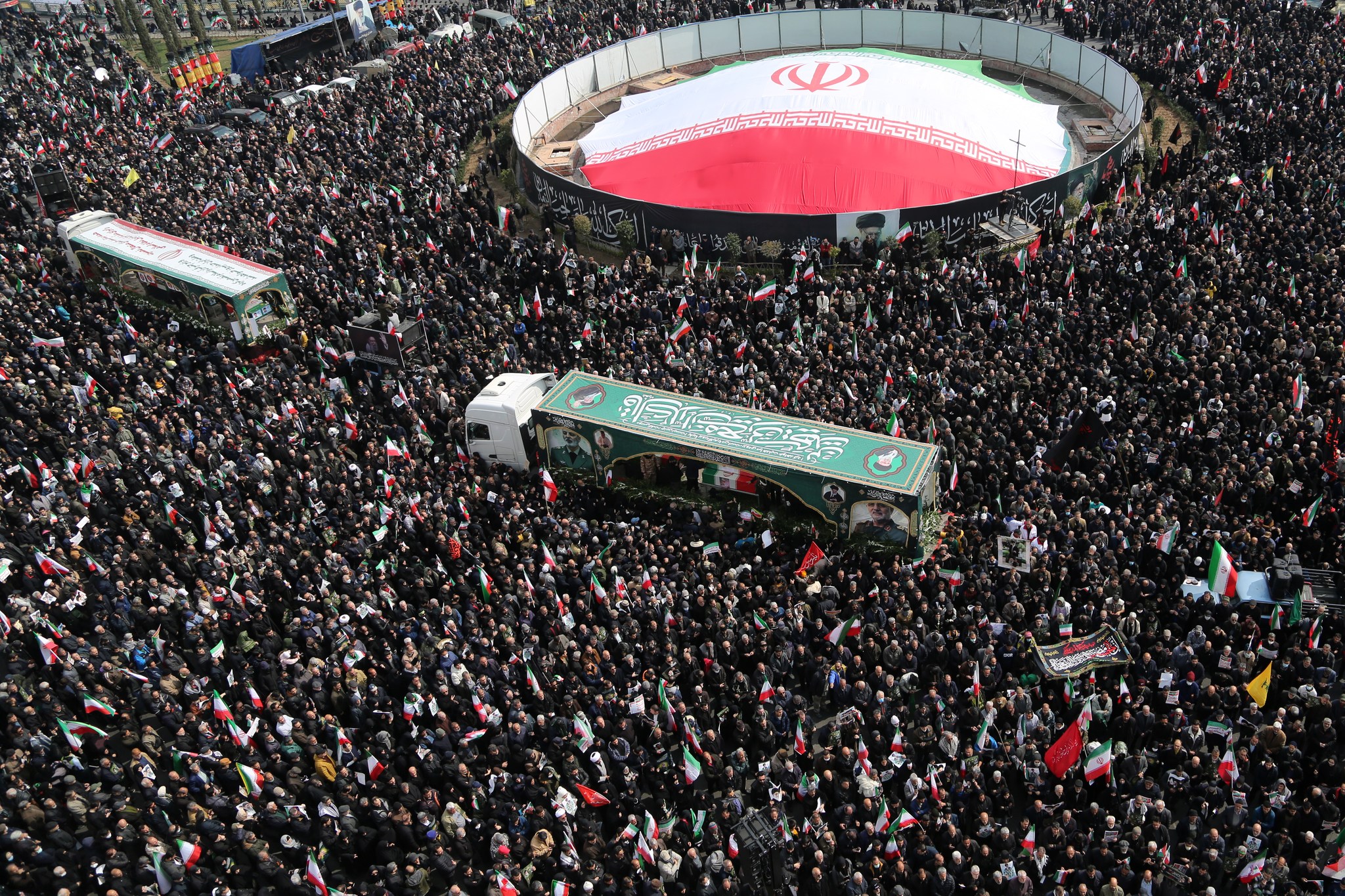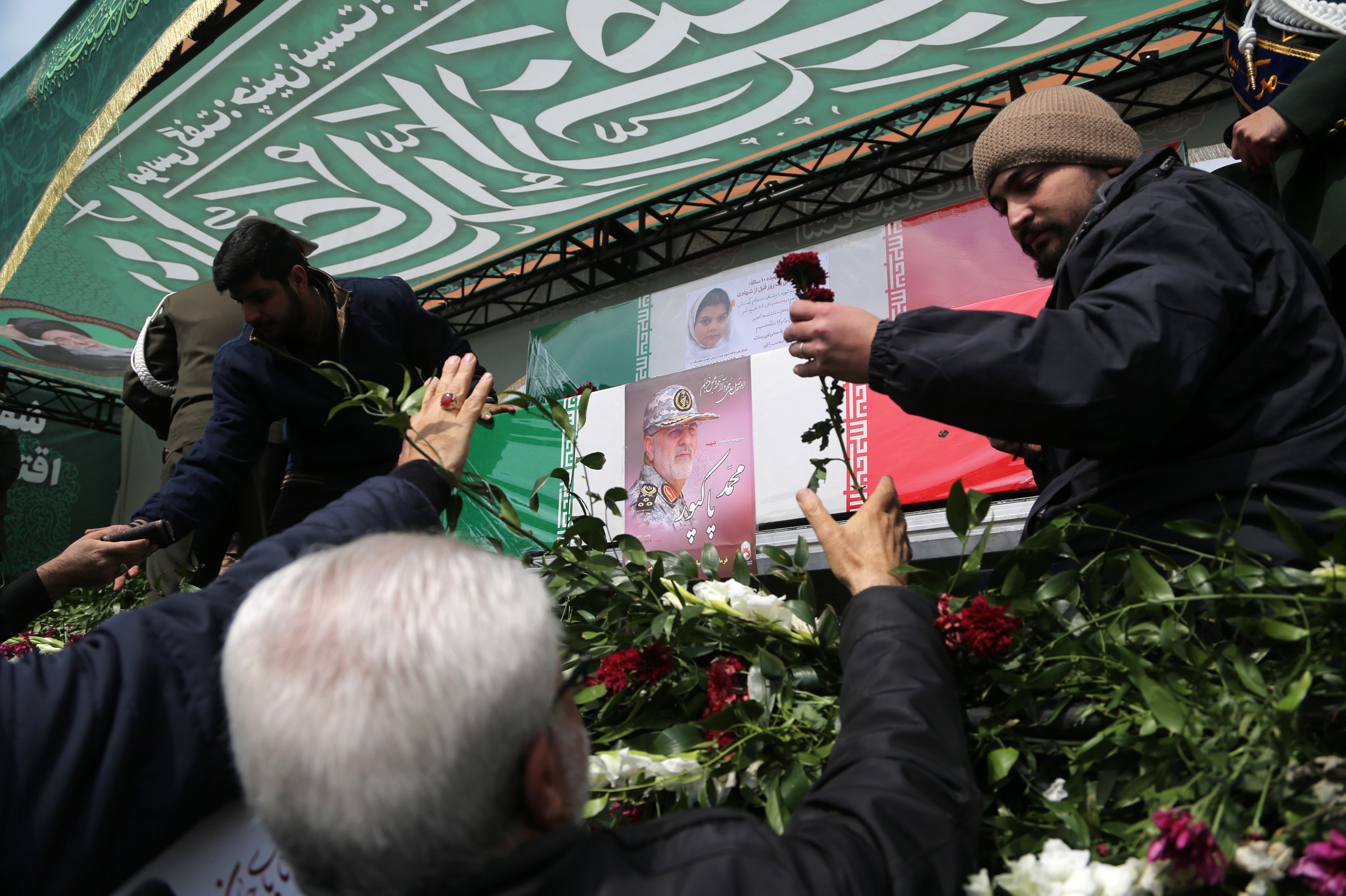 ووصلت إلى ساحة الثورة جثامين كل من، رئيس الأركان العامة عبد الرحيم موسوي، والقائد العام للحرس الثوري محمد باكبور، والأمين العام لمجلس الدفاع علي شمخاني، ورئيس الدعم اللوجستي للقوات المسلحة عزيز ناصر زاده، واللواء محمد شيرازي، الأمين العام لمكتب المرشد الإيراني.