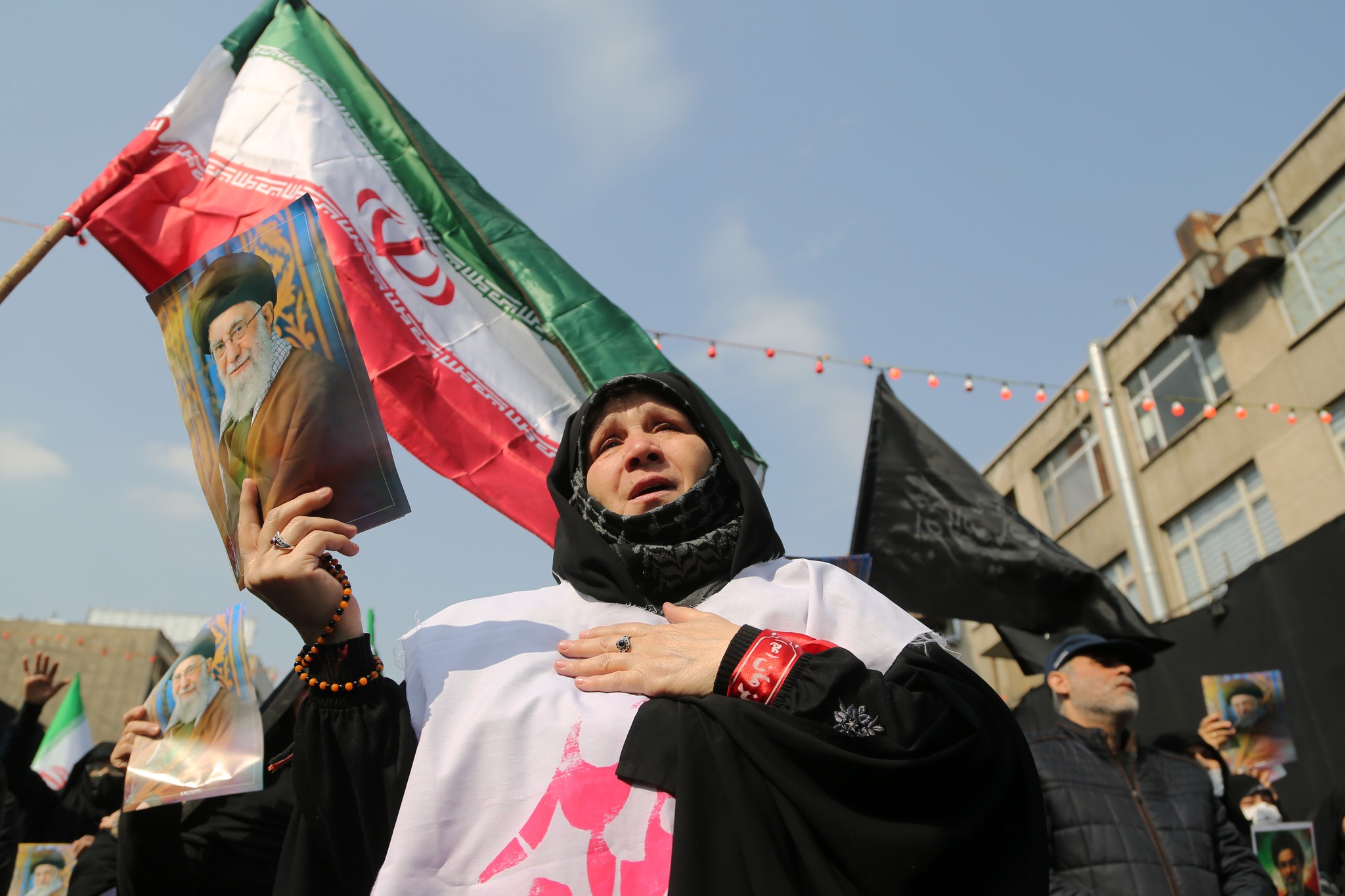 وهتف المشاركون في مراسم التشييع بشعارات مناهضة للولايات المتحدة وإسرائيل وبريطانيا.