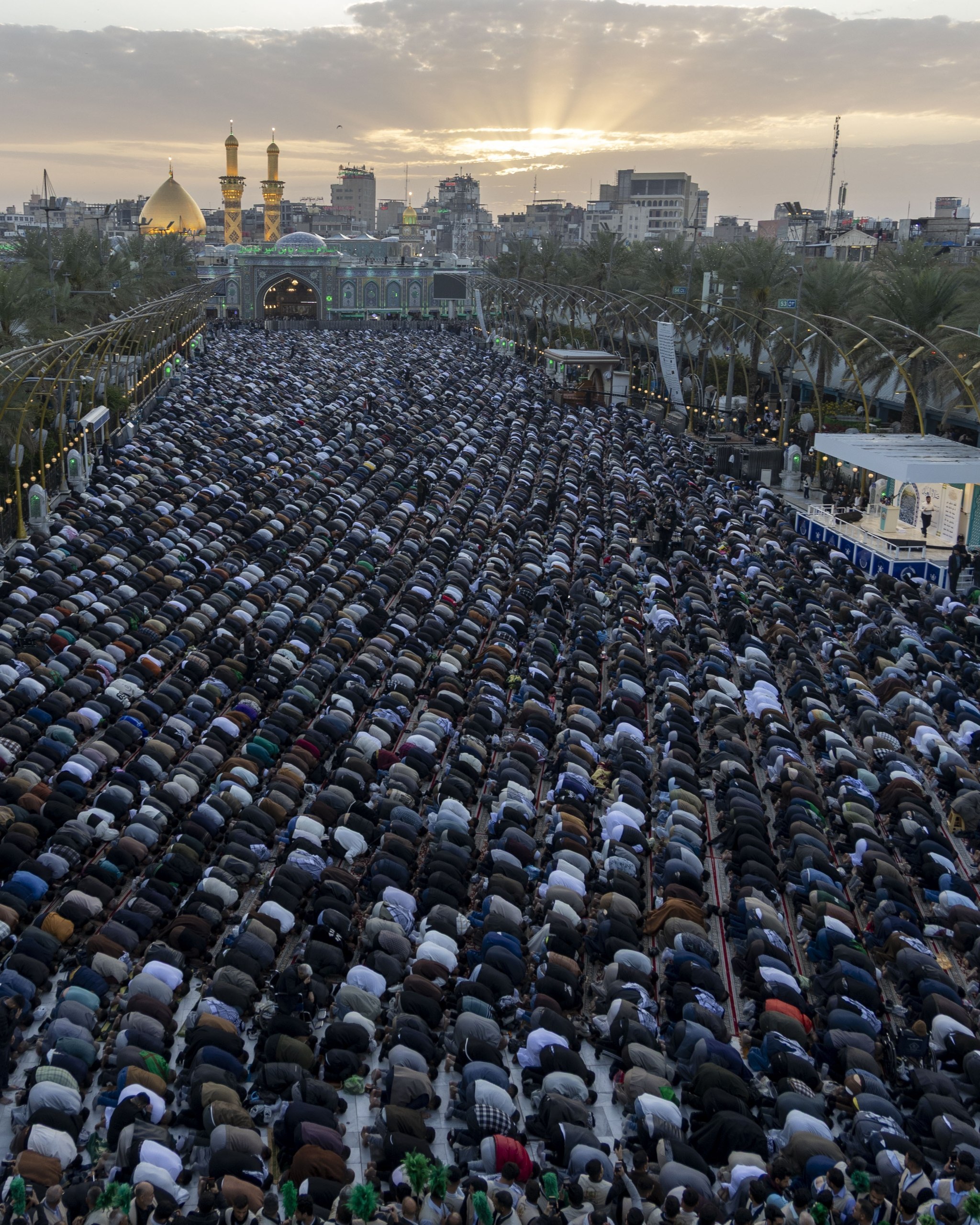 شهدت مدينة كربلاء المقدسة، صباح اليوم السبت، توافد آلاف المسلمين لإحياء صلاة عيد الفطر، في منطقة بين الحرمين الشريفين، في أجواء روحانية مميزة.