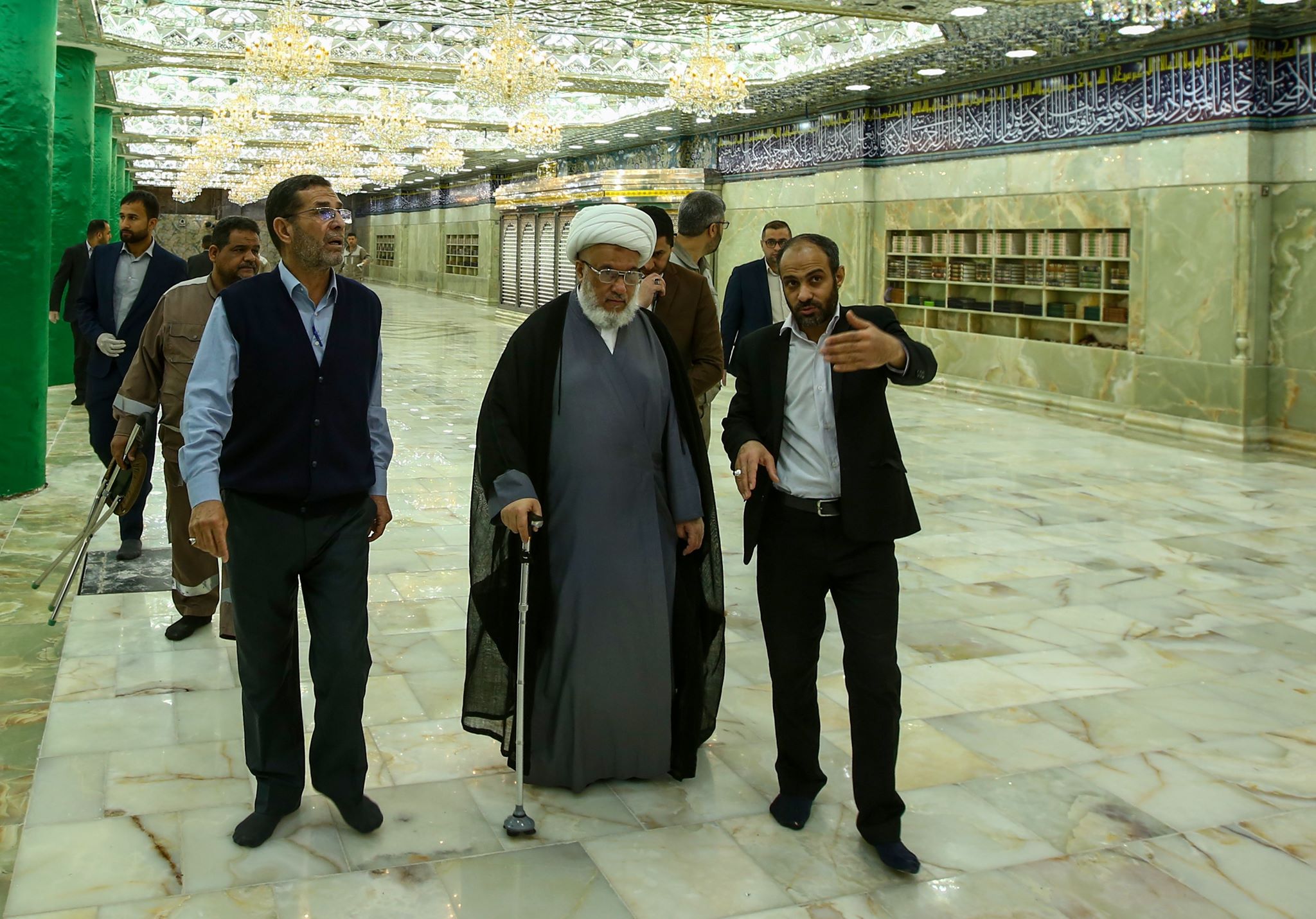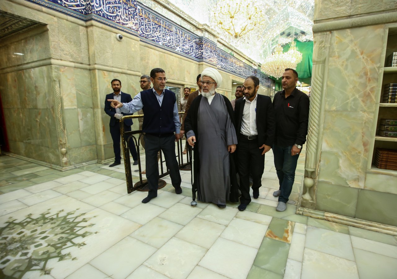 تفقد ممثل المرجع السيستاني الشيخ عبد المهدي الكربلائي كافة اقسام العتبة الحسينية المطهرة وحث العاملين على اكمال المشاريع التي تصب في خدمة الزوار رغم الضروف الصحية التي تمر بها كربلاء والعراق عموما