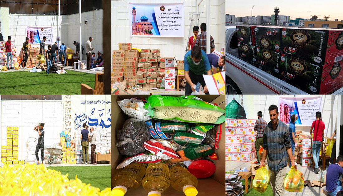 إلى ذلك، قام مجموعة من متطوعي العتبة الحسينية المقدسة في محافظة ذي قار بتوزيع العديد من السِلال الغذائية على العوائل الفقيرة والمتعففة خلال حظر التجوال في المحافظة .