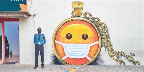 ويقول الفنان الذي تُظهر آخر أعماله رمزًا تعبيريًا يرتدي قناع وجه، وهو بجانبه يرتدي قناع وجه لحث الجميع على أهمية ارتداء القناع "يحب استخدام فنه كشكل من أشكال اللغة للتعبير عن نفسه وكذلك حث الناس على اتخاذ الاحتياطات الصحيحة، لأنه قد توقف الناس عن اتباع المسافات الاجتماعية، وأرى الكثير منهم لا يرتدون قناعًا أيضًا".