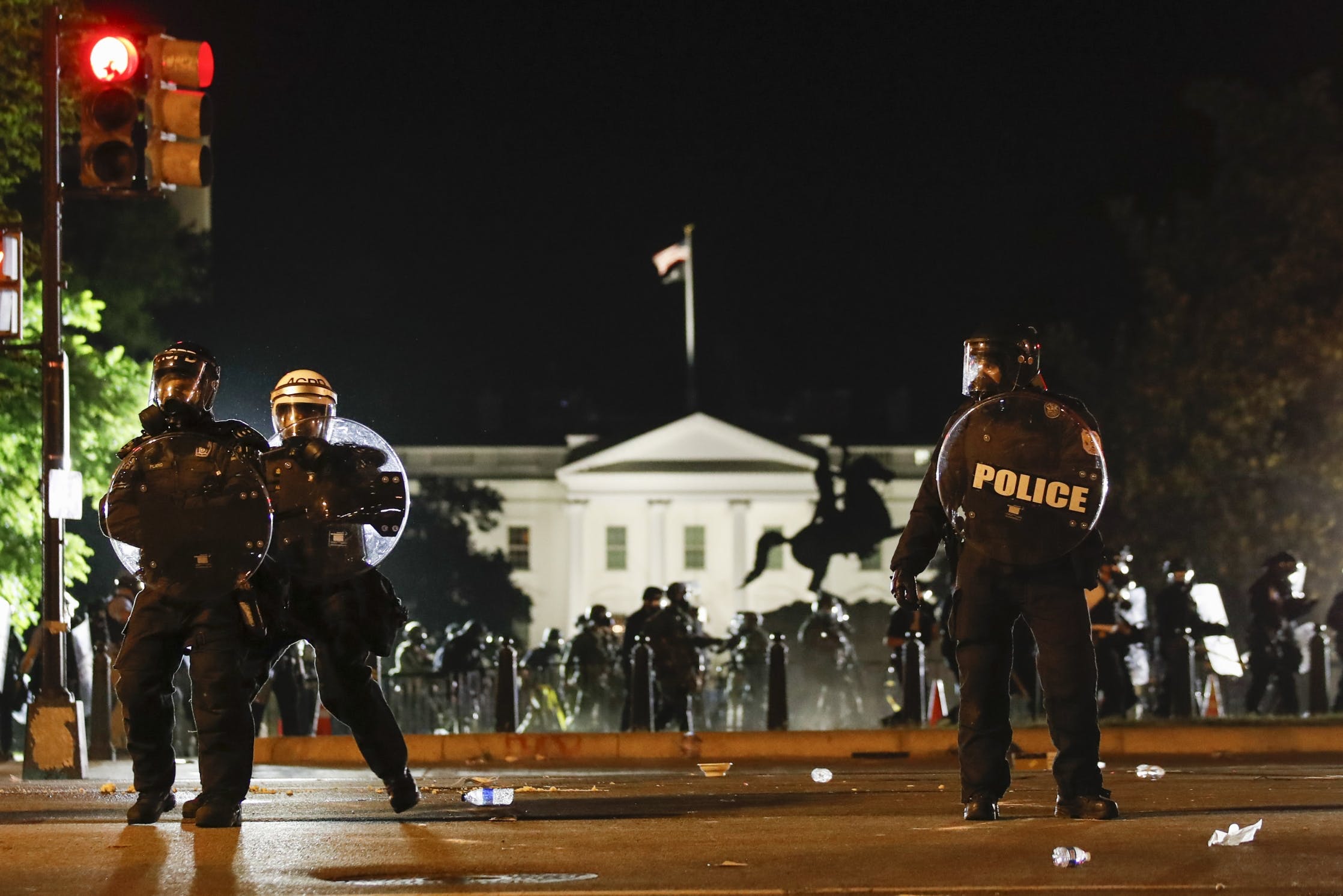 تزامنا مع الاشتباكات مع الشرطة، تواصلت الاحتجاجات التي استمرت يومين أمام البيت الأبيض.