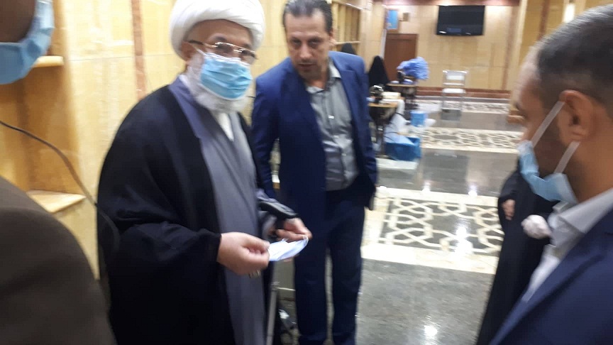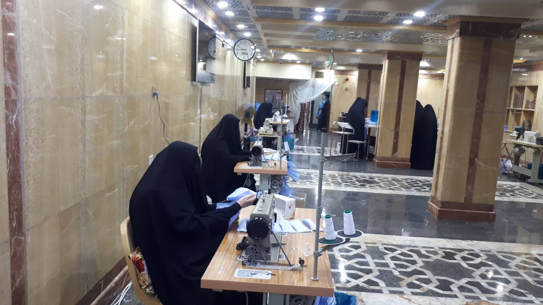 اطلع المتولي الشرعي للعتبة الحسينية المقدسة الشيخ عبد المهدي الكربلائي على احد معامل انتاج الكمامات في داخل العتبة الحسينية المقدسة