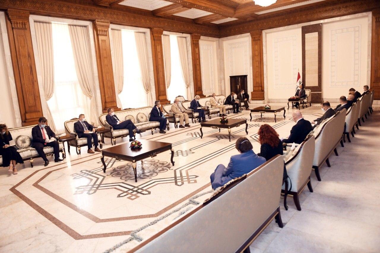 وأشار رئيس الجمهورية إلى أن "العراق ينظر باهتمام بالغ لتطوير التعاون والشراكة الاقتصادية مع الدول الأوروبية خدمةً للمصالح المشتركة"، مشدداً على "ضرورة التنسيق والعمل المشترك لمواجهة تداعيات جائحة كورونا واثارها على الأوضاع الاقتصادية".