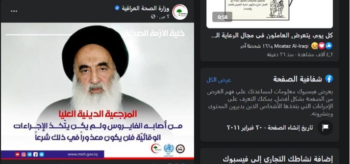 ونص المقطع الذي نشرته الوزارة على صفحتها الرسمية، في فيسبوك، (24 تموز 2020)، : " من أصابه الفايروس ولم يكن يتخذ الإجراءات الوقائية فلن يكون معذورا في ذلك شرعا".