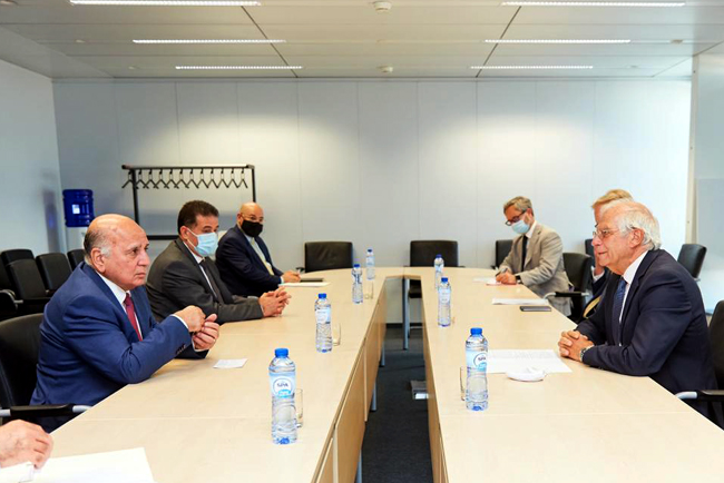 وقالت الخارجية العراقية في بيان تلقت وكالة نون الخبرية، نسخة منه، إن حسين "التقى جوزيب بوريل الممثل الأعلى للسياسة الخارجيّة والأمن في الاتحاد الأوروبيّ بمقرّ المُفوّضيّة الأوروبيّة في بروكسل"، مبينة أن وزيرها "ثمّن مواقف الاتحاد الأوروبيّ الداعمة للعراق في المجالات التنمويّة المُختلِفة، وفي مجال المُساعَدات الإنسانيّة، مُشِيداً بحرص الاتحاد على تقديم الدعم السياسيّ والاقتصاديّ للعراق، ولاسيّما مساعدته في مجال مُواجَهة جائحة كورونا والحدّ من انتشارها".