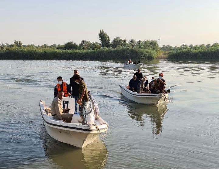 باشرت زوارق وزارة النقل / الشركة العامة للنقل البحري بخدمة نقل زائري اربعينية الامام الحسين (ع) في محافظة واسط بواسطة الزوارق النهرية التابعة للشركة.
