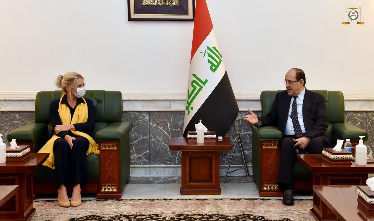وقال مكتب المالكي في بيان، ان "رئيس ائتلاف دولة القانون نوري المالكي استقبل بمكتبه اليوم ممثلة الأمين العام للأمم المتحدة في العراق السيدة جينين بلاسخارت".