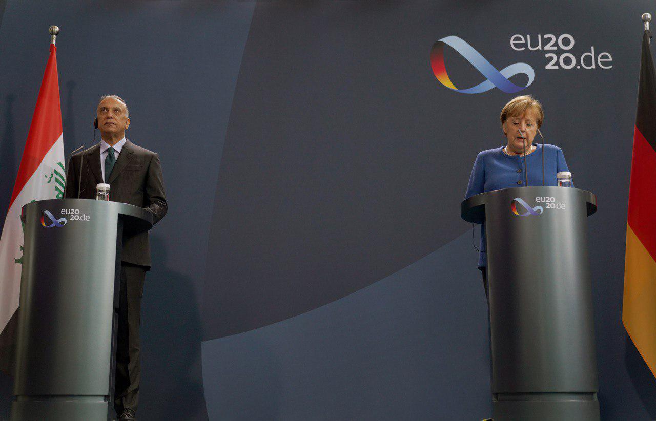 وقال الكاظمي بمؤتمر صحفي مع المستشارة الألمانية أنجيلا ميركل في برلين: "جئت إلى برلين لتأكيد التزامات العراق بالعلاقات الوثيقة والشراكة المستدامة مع ألمانيا، وأنقل التقدير الكبير من الحكومة والشعب العراقي إلى ألمانيا لمساعدتها العراق بمواجهة الإرهاب".