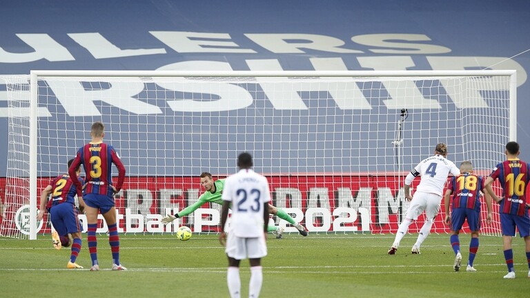 وعاد ريال مدريد للتقدم في الدقيقة الـ63 عن طريق قائده سيرخيو راموس من ركلة جزاء احتسبها الحكم بعد الرجوع لتقنية الفيديو المساعد VAR.