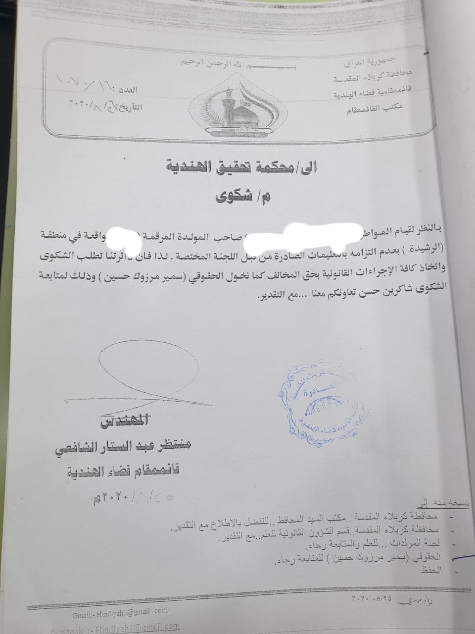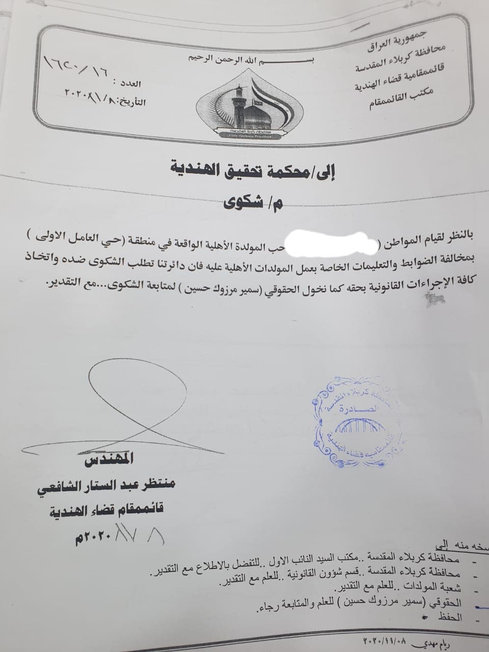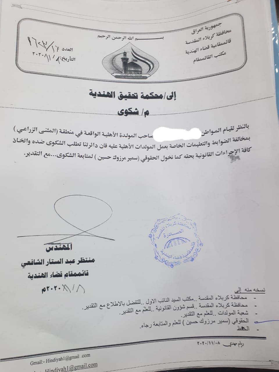 كشف قائممقام قضاء الهندية في كربلاء عن تسجيل شكاوي قضائية بحق المخالفين من اصحاب المولدات بموضوع طلب مبالغ اضافية برغم استمرار التيار الكهربائي الوطني