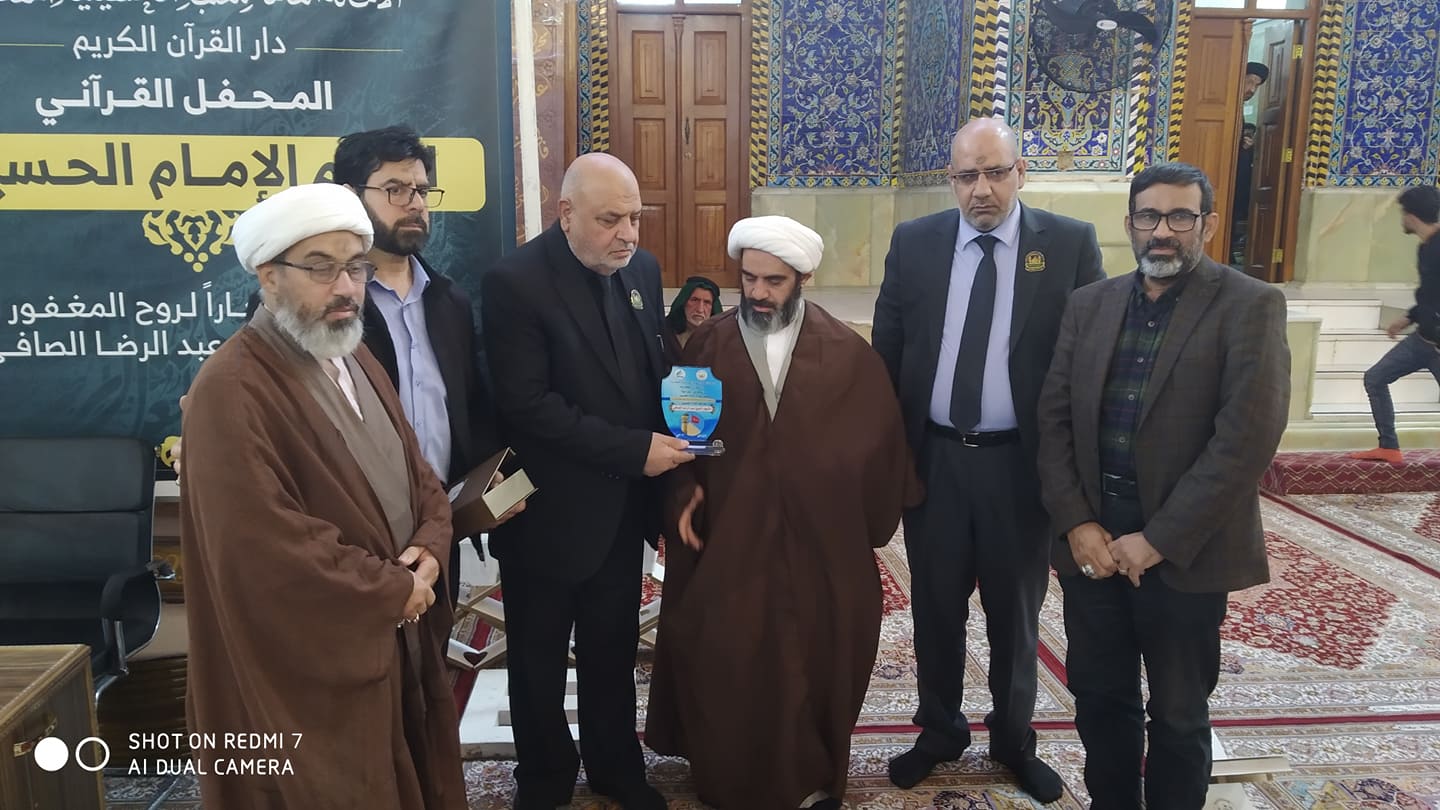 اهدت الامانة العامة للعتبة الحسينية المقدسة راية قبة الامام الحسين عليه السلام لعوائل شهداء المنبر الحسيني مع اقامة محفل قرآني على روح الشهداء الذين قضوا دفاعا عن العراق والقضية الحسينية