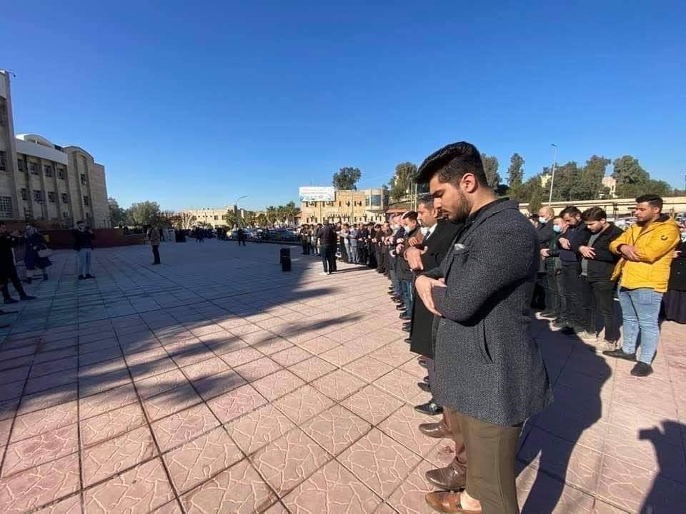 اظهرت صورا حصلت عليها وكالة نون قيام طلبة جامعة الموصل بصلاة الغائب على ارواح شهداء تفجيرات ساحة الطيران في داخل الحرم الجامعي