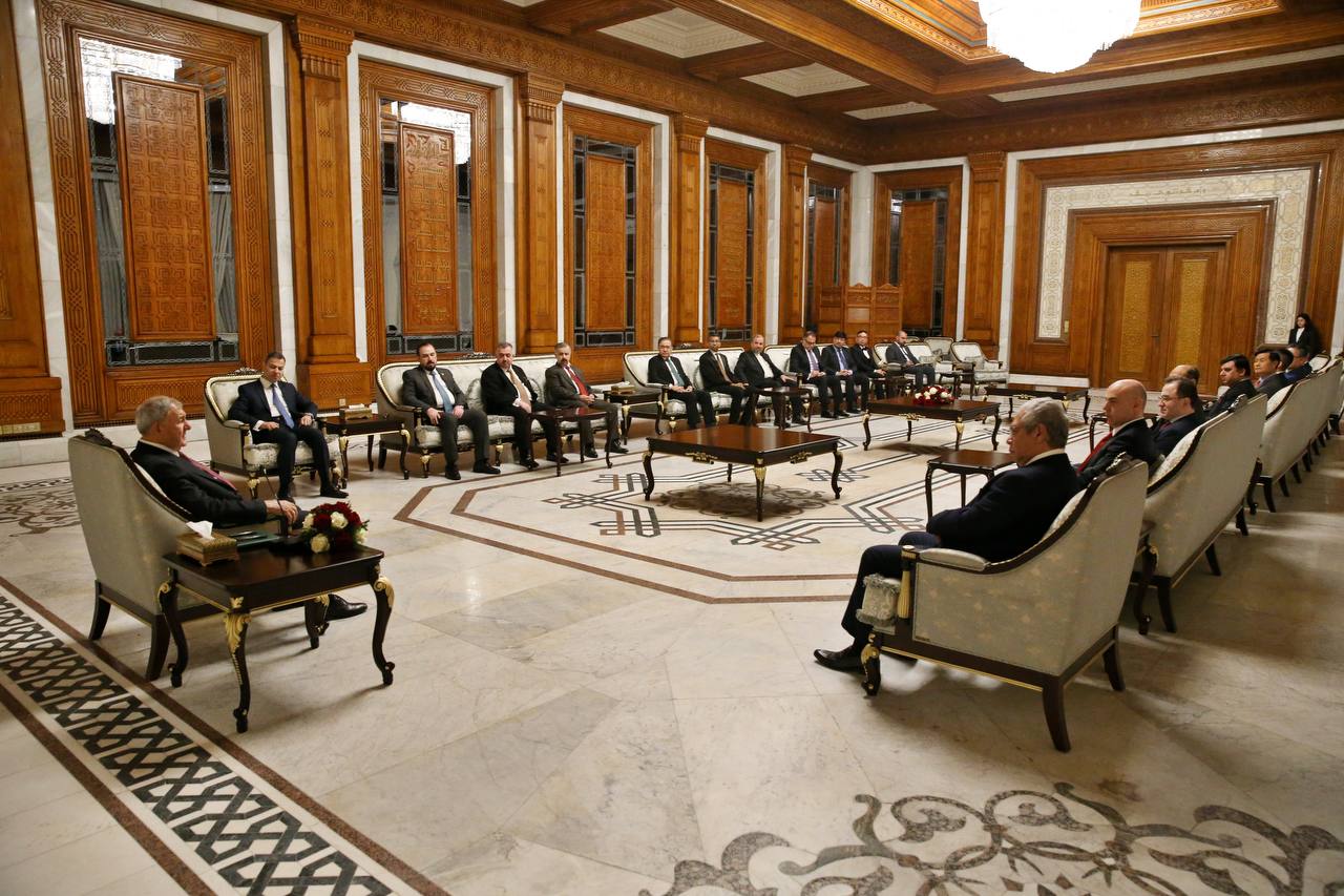 بدورهم قدّم سفراء الدول شكرهم وتقديرهم للرئيس على حفاوة الترحيب، مؤكدين حرص بلدانهم ورغبتها في توطيد أواصر العلاقات لتشمل الصعد كافة وبما يحقق آمال الشعوب وتطلعاتها في التطور والازدهار.