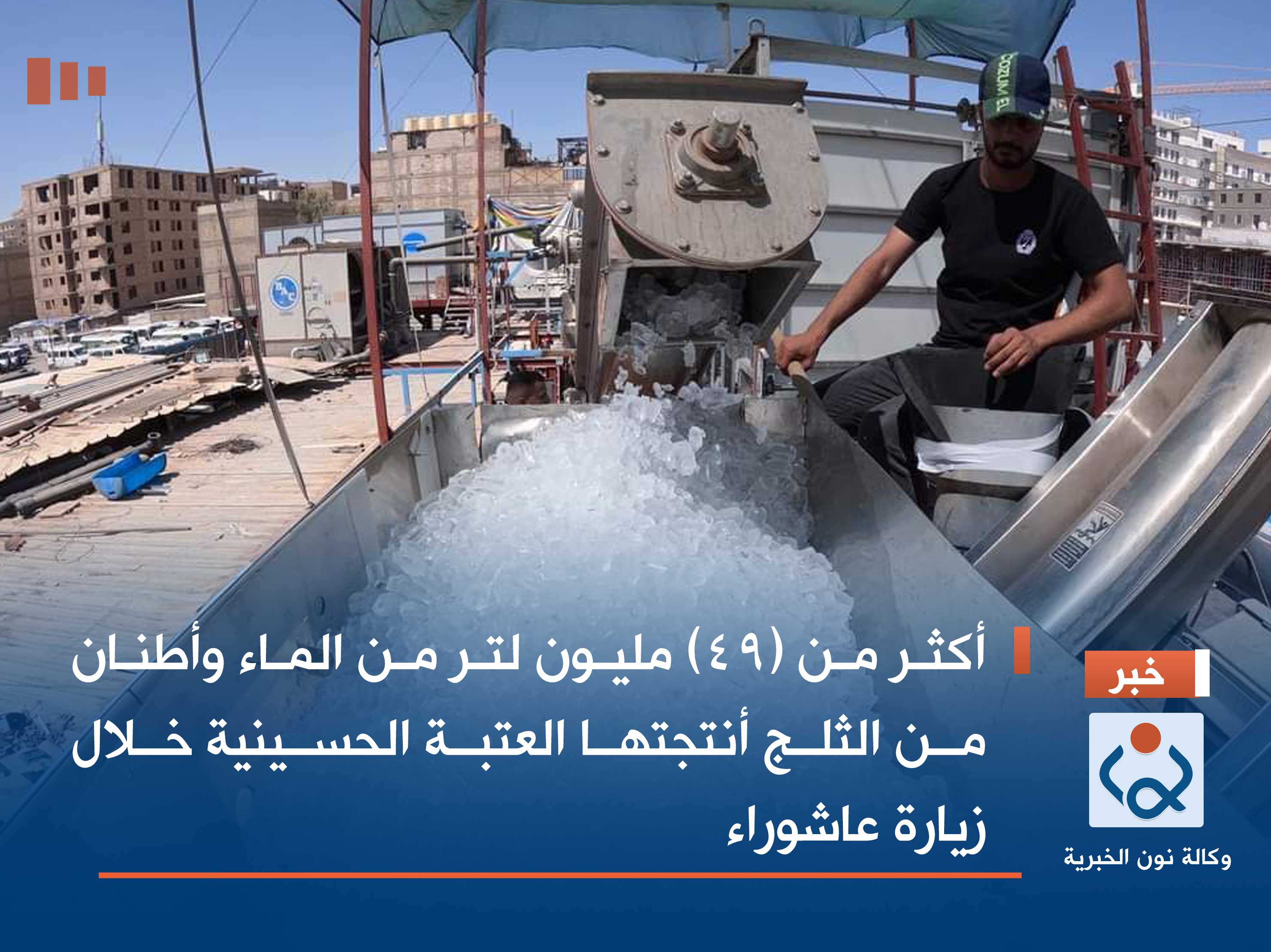 وقال رئيس قسم الصيانة المهندس عبد الحسن محمد لوكالة نون الخبرية، إن "القسم أنتج (49.390) متر مكعب من الماء الخام والـ (R.O) وأطنان من الثلج خلال زيارة عاشوراء، وتم تشغيل معامل الثلج ومحطات تحلية الماء الـ (R.O) والخام بكامل طاقتها الإنتاجية".