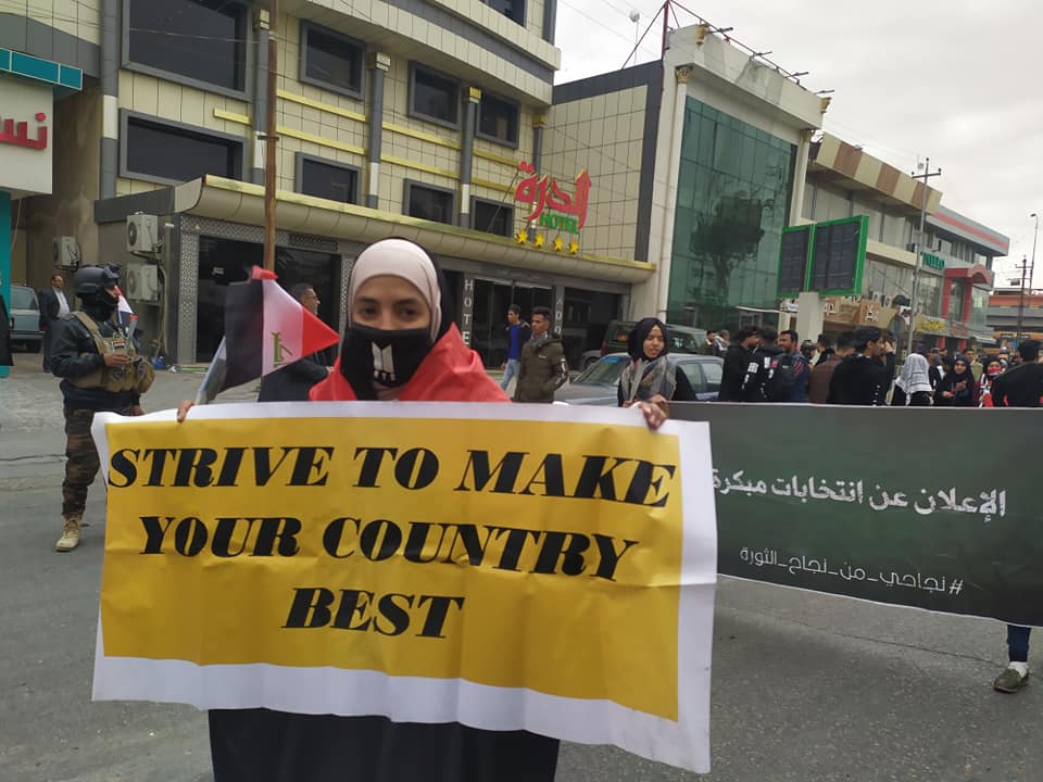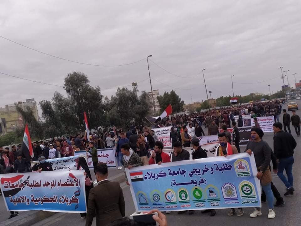 خرجت في كربلاء اليوم مسيرة موحدة لطلبة الجامعات في كربلاء تطالب بالاسراع بتشكيل الحكومة ومحاسبة القتلة وسراق المال العام