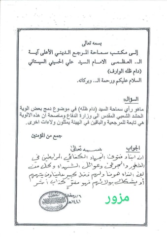 نفى مصدر من مكتب المرجع السيستاني اصدار اي استبيان بخصوص الوية تابعة للحشد الشعبي