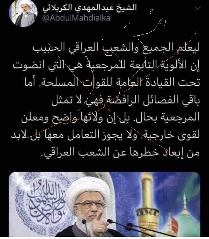 واضاف ان "ما يتم نشره باسم الشيخ الكربلائي هي حسابات مزورة ولا تمت اليه بأي صلة".