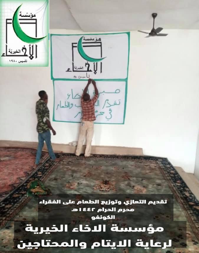 قامت مؤسسة الاخاء الخيرية في محافظة كربلاء المقدسة بتوزيع مواد غذائية ومنح مالية للايتام والفقراء في قضاء سامراء وجمهورية الكونغو الديمقراطية في قارة افريقيا