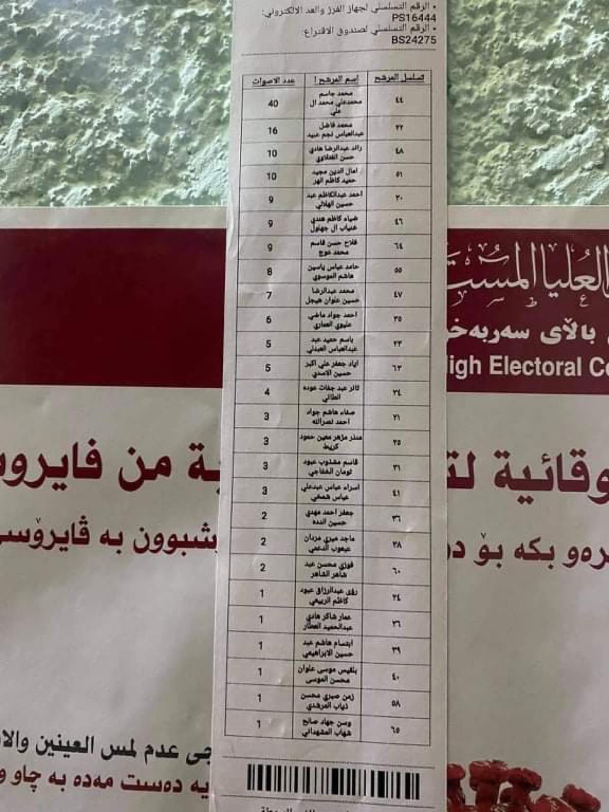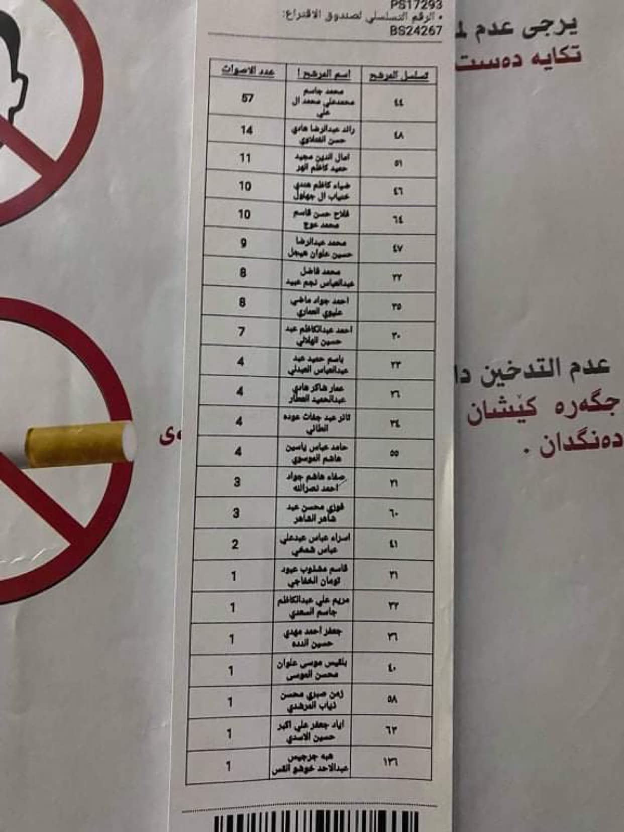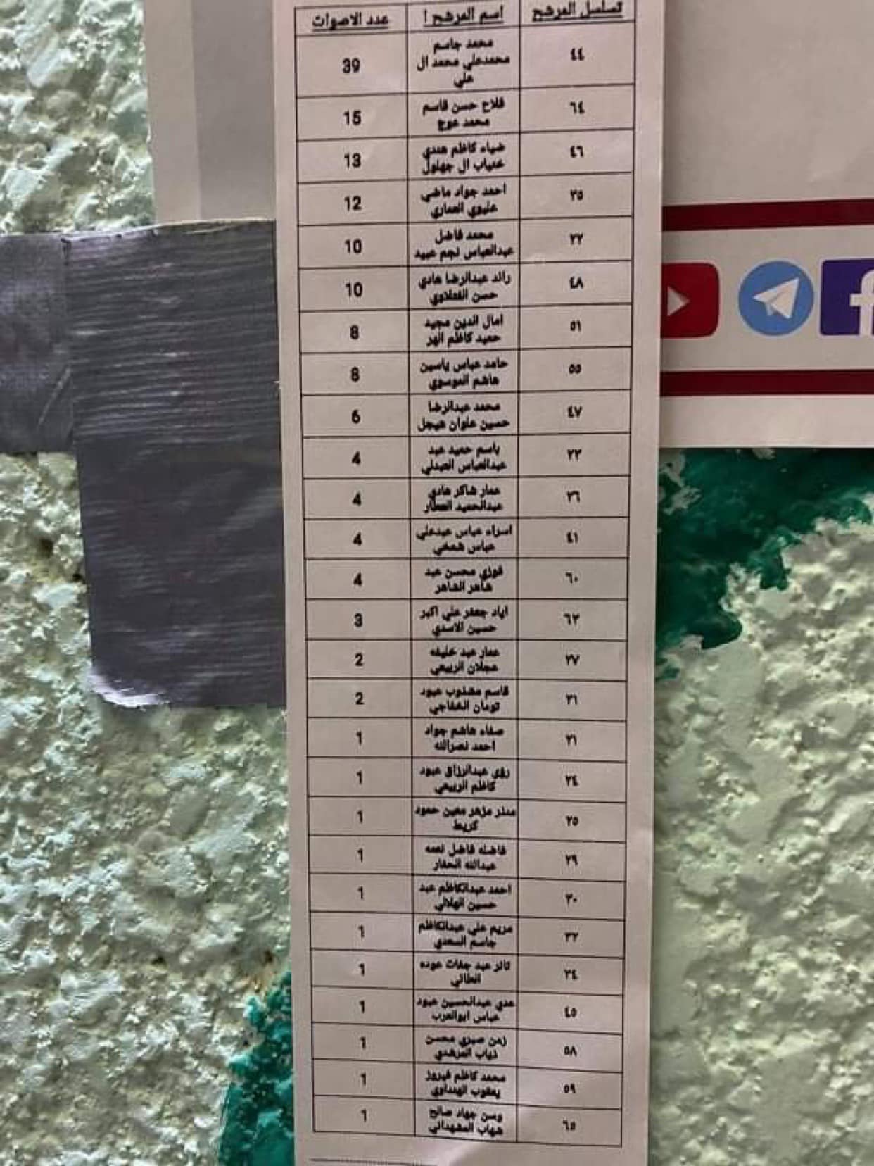 اظهرت النتائج الاولية فوز المرشح عن قائمة اشراقة كانون المهندس محمد جاسم محمد علي ال علي الخفاجي في عدد من المراكز في مركز محافظة كربلاء والاحياء القريبة
