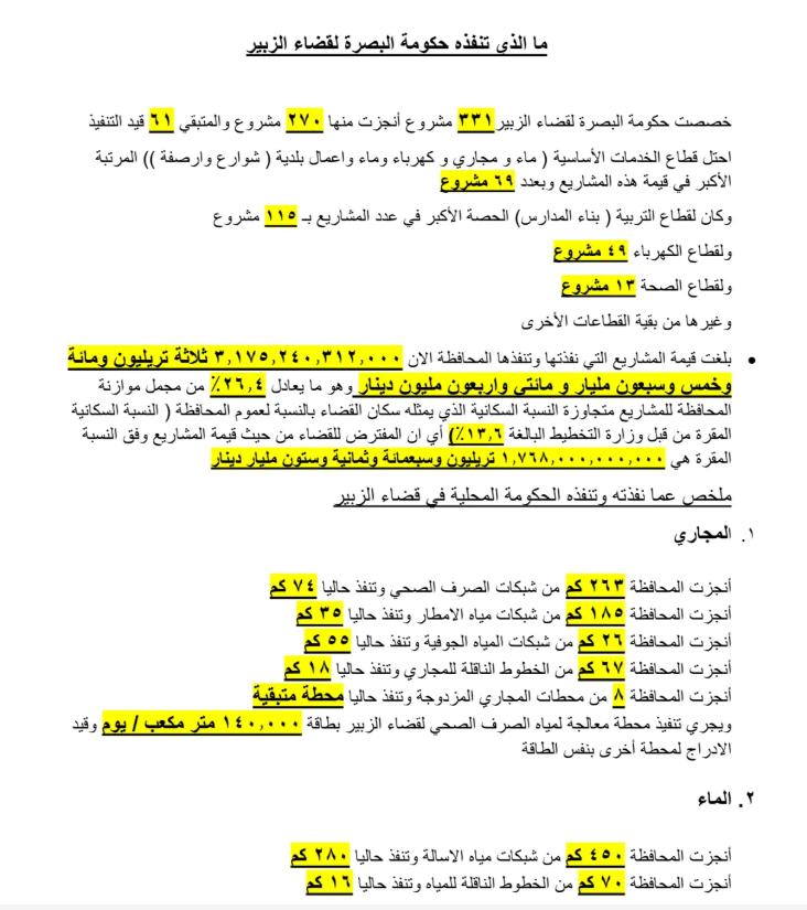 نشر موقع المسرى الخبرية ، اليوم السبت 5/4/2025 بالأرقام النسب التي حققتها حكومة البصرة في قضاء الزبير.