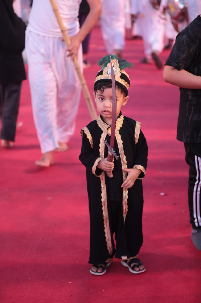 والعائلات من جانبها اصطحبت الاطفال والصبية معها والبستهم ثياب الحرب او الزي الاسلامي القديم حرصا منها على زراعة حب الحسين (عليه السلام) في قلوب الابناء لينتقل جيلا بعد آخر كما نقلت الينا من اجدادنا وآبائنا، ورسم الاطفال اليوم لوحة البراءة وقساوة وهمجية معسكر اعداء الحسين (عليه السلام).