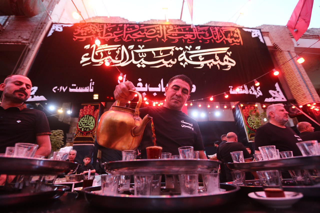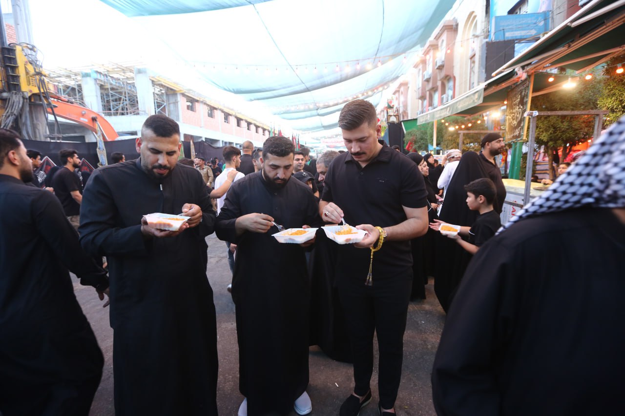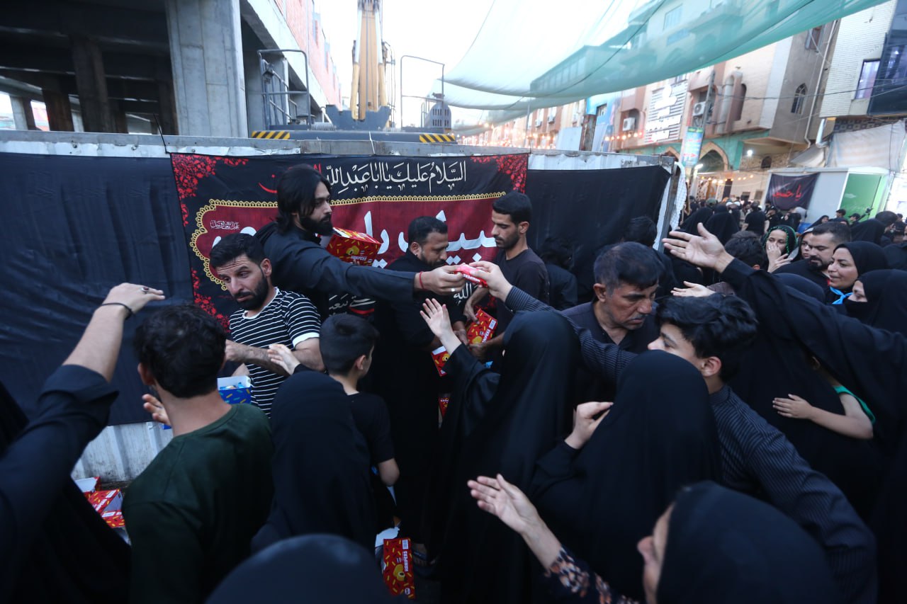 مع اشتداد الزخم البشري قبل يومين من حلول يوم العاشر من المحرم استنفر اهالي كربلاء ومواكبهم وهيئاتهم الحسينية اعلى طاقاتهم ونشروا موائد الطعام المختلفة في كل شارع وزقاق من المدينة القديمة، ونصبوا الاف الاحواض التي تقدم المياه والعصائر الباردة للزائرين لتخفيف حرارة اجسادهم نتيجة ارتفاع درجات الحرارة، لا سيما ان البلاد دخلت في ذروة موسم الصيف في شهر تموز المعروف بشدة الحرارة في العراق.