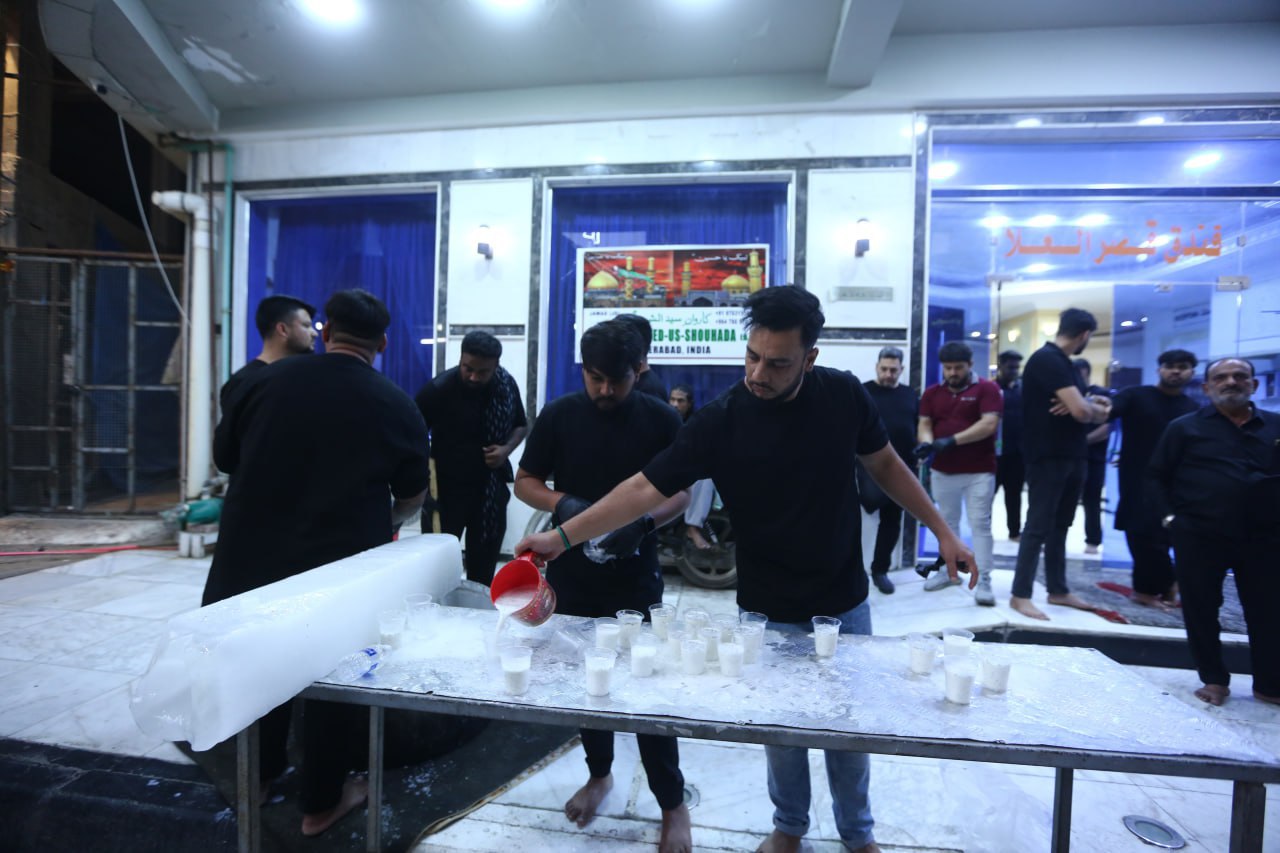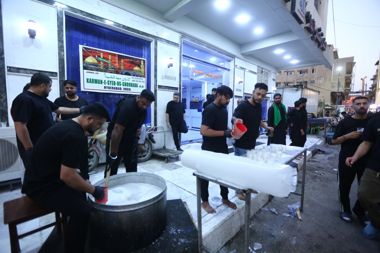 وقال مسؤول الحملة والموكب "جواد آبادي" لوكالة نون الخبرية ان" جئنا من مدينة "حيدر آباد" في الهند، وعددنا (180) زائر وزائرة من مختلف الاعمار وبيننا اطفال ايضا، وصلنا الى مدينة كربلاء المقدسة في الثالث من شهر محرم الحرام الجاري، ونحن نأتي باستمرار الى زيارة العتبات المقدسة ومنها العتبتين المقدستين الحسينية والعباسية في جميع الزيارات المليونية مثل محرم والاربعينية والشعبانية، وفي مدينة "حيدر آباد" يوجد بحدود مليون مسلم شيعي، ونحن عندما نأتي من الهند الى كربلاء نعمل جاهدين على المشاركة في تقديم الخدمة للزائرين لنحصل على اجر الزيارة وثواب الخدمة ونقسم المهام والادوار بيننا، ويتعاون معنا صاحب الفندق الذي نسكن به ويسمح لنا باستخدام المنطقة الواقعة امام واجهة الفندق لتقديم المأكولات والمشروبات الى الزائرين على الذائقة الهندية، وكذلك اعداد الطعام الهندي في مطبخ الفندق لتقديمه كوجبات".