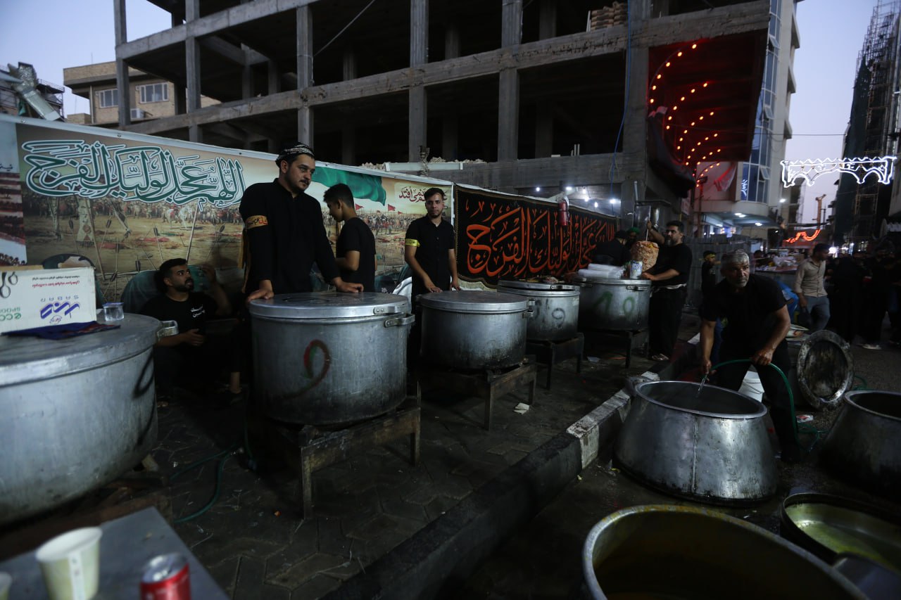 ويضيف "المحمـداوي" بالقول ان" الموكب يتنقل خلال كل عام الى المدن الدينية ليقدم خدماته في مناسبات استشهاد الائمة الاطهار (عليهم السلام)، ففي مدينة سامراء نحيي شعائر استشهاد الامامين علي الهادي والحسن العسكري (عليهما السلام) وننصب المواكب لمدة اسبوع في كل زيارة، اما في مدينة الكاظمية فيقدم الموكب خدماته للزائرين لمدة (10) ايام في ذكرى استشهاد الامام موسى بن جعفر (عليه السلام)، وفي زيارة استشهاد الامام محمـد الجواد (عليه السلام) نستمر لمدة اسبوع تقريبا، واذا كانت تلك المناسبات في يوم الخميس فينقسم خدام الموكب الى قسمين منهم يقدمون الخدمة في كربلاء الحسين والآخرين في المدينة المقدسة الاخرى لصاحب الذكرى، وعند استشهاد أمير المؤمنين علي بن أبي طالب (عليه السلام) زيارة عيد الغدير تكون خدمتنا في مدينة النجف الاشرف لايام عدة، ومن الخدمات التي يقدمها الموكب هو تقديم الدعم الكبير لحوالي (40) موكبا حسينيا وتجهيزهم بالمواد الغذائية الجافة مثل الرز، والفاصولياء، والحمص، والزيت، والسمن النباتي، والمعلبات، والثلج، والمياه النقية (RO)، ونحتفظ بسجل لأسماء المواكب وبطاقاتها التعريفية وارقامها، ونستمر معهم كل عام على الاتصال الهاتفي لتجهيزهم، ونحضر قبل اسبوع الى كربلاء المقدسة لتخزين المواد في المخزن التابع للموكب لتوزيع المواد الغذائية والثلج للمواكب، ثم نبدأ بتقديم الخدمة الحسينية ولدينا الاستعداد لاضافة اي موكب يرغب بذلك".