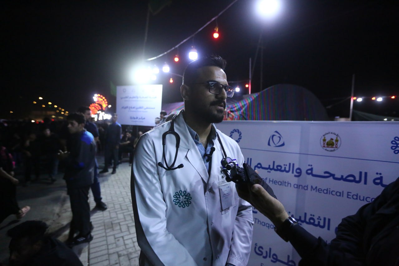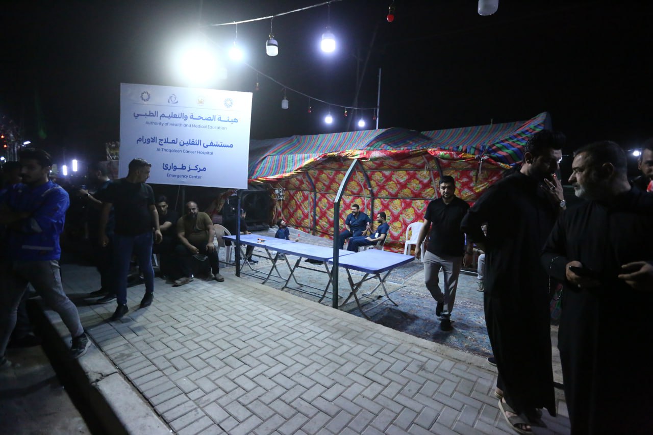 لانهم رسل الشفاء والخدمات الانسانية والطبية المتميزة، ورغم زخم العمل الشاق وعدد المراجعين الذين فاق عددهم تسعة الاف مريض في مدة قصيرة، الا ان ادارة وملاكات مستشفى الثقلين لعلاج الاورام ومن خلفهم تقف هيئة الصحة والتعليم الطبي وتدعمهم العتبة الحسينية المقدسة، اصروا في تجربتهم الاولى على تقديم افضل الخدمات الطبية والصحية عبر نصب اول مفرزة طبية في الميدان بالشوارع التي يسلكها السائرون من البصرة نحو قبلة الشهادة في كربلاء المقدسة.
