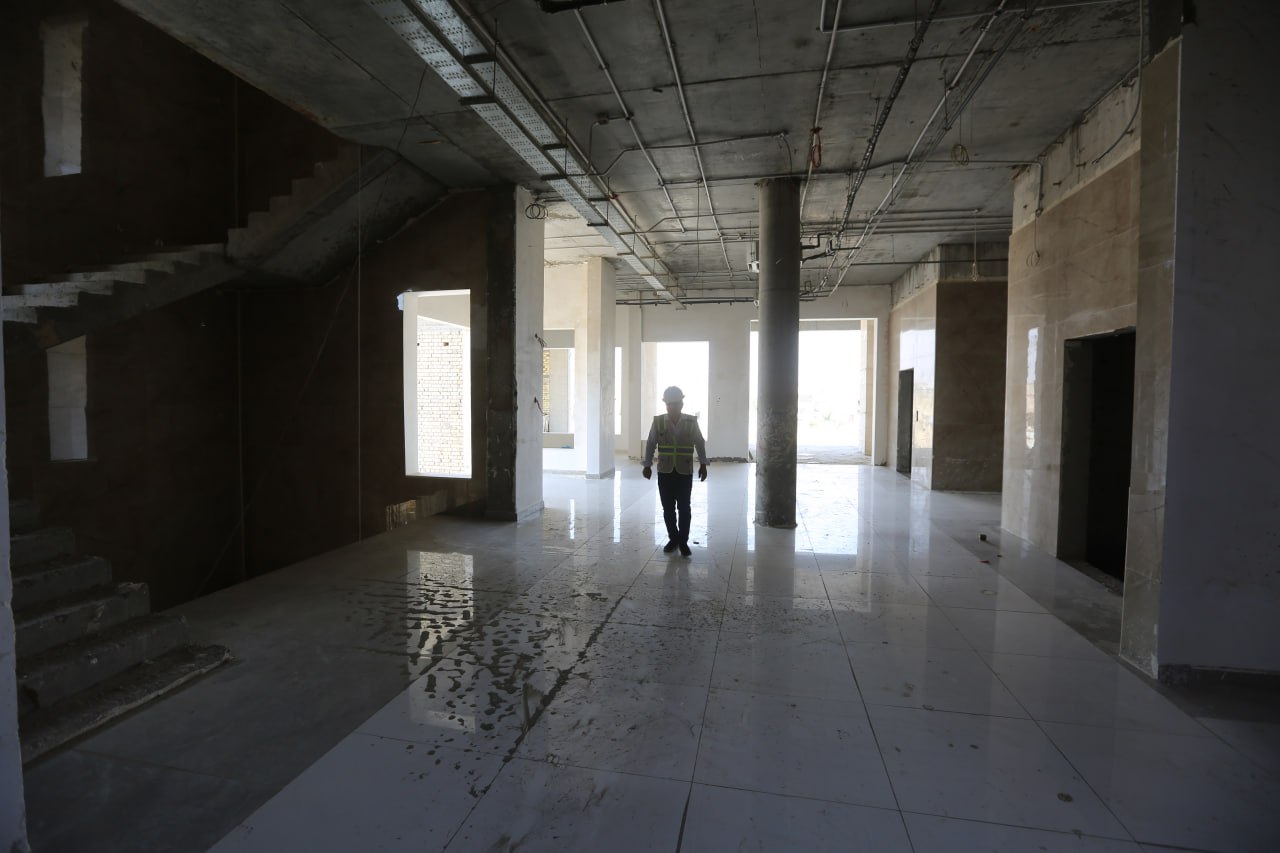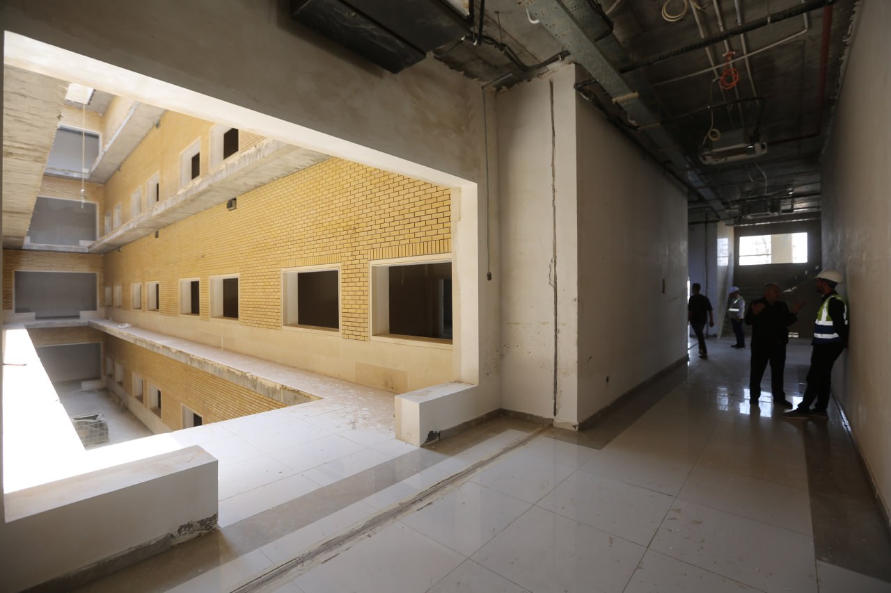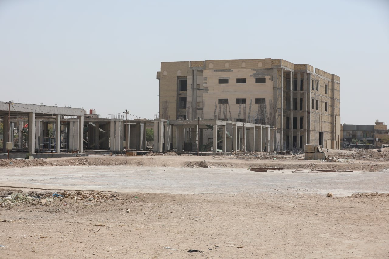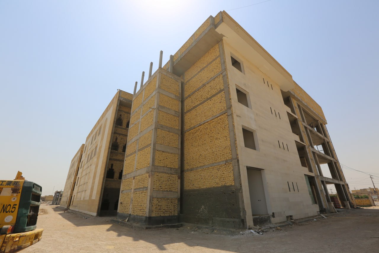 واوضح "عبد المهدي" قائلا ان " التصاميم الخارجية ذات طابع اسلامي استخدمت فيه تصاميم الاقواس الاسلامية في واجهات البنايات الخمسة من مادة المرمر، والجف قيم، و(GRC)، والكاشي الكربلائي، وفي المجمع (10) مصاعد بواقع مصعدين لكل بناية، وعشر سلالم لصعود ونزول الطلبة والطالبات والتدريسيين وعشر سلالم للطوارئ، اي في كل بناية اربع سلالم ومصعدين، وفي كل بناية توجد بالطبقة الارضية قاعة مكتبة، وفي باقي الطبقات قاعات للرسم والتدريب داخلية، وكذلك توجد ملاعب خارجية وبمساحات مختلفة، وتوجد كذلك كافيتريا ومجاميع صحية منها للطلبة واخرى الاساتذة في كل بناية، وفي كل مجموعة صحية توجد حمامات مخصصة لذوي الاحتياجات الخاصة بمساحة اكبر وخدمات متكاملة لهم، ومساحات الصفوف الدراسية حددت حسب معايير وقياسات اعلى مما تطلبه وزارة التربية، وتصل مساحتها الى (48) متر مربع، وبالنسبة للزجاج فقد استخدم بمواصفات حديثة من نوع (G6) من طبقتين وفيه حماية خارجية، ومراعاة لارتفاع درجات الحرارة الحاد في المحافظات الجنوبية صممت واجهات البنايات من واجهتين احدهما اساسية، واخرى سكرين فيها نقوش اسلامية من نوع (GRC) تعتبر "كاسرات شمس" تقلل دخول اشعة الشمس الى الصفوف الدراسية، والقاعات، والمكاتب، فتقل معها درجات الحرارة"، مبينا ان" نسب الانجاز في المرحلة الاولى المتعلقة بانشاء مدرستين للبنين من مجموع ثلاثة وصلت الى (80 ــ 85) بالمئة من المخطط له، اما في المرحلة الثانية فقد بوشر ببناية الخدمات وثالث مدارس البنين بانجاز الهيكل الكونكريتي الى (50) بالمئة، اما مدرسة البنات فوصلت في تشييد الهيكل الكونكريتي الى نحو (35) بالمئة، ونستطيع القول ان نسب الانجاز في المرحلة الثانية بما يتعلق بالهيكل الكونكريتي تتراوح بين (55 ــ 60) بالمئة".