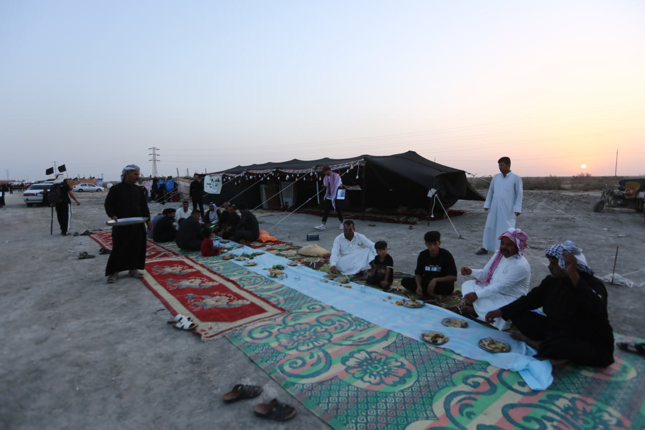 وفي حملات الطاغية المقبور ضد الامام الحسين (عليه السلام) وشعائره لم تنقطع او تترك "ام لفتة" عشقها لابي عبد الله وشعائره عن هذا الامر يتحدث "ابو جليل" قائلا" في تلك الأيام كان حضور جلاوزة الامن والبعث يوميا تقريبا ويطلقون التهديدات والتعليمات حتى وصل الحال الى منع الرايات واستعمال مكبرات الصوت او حتى إقامة العزاء بحضور حاشد، ولكننا كنا نقيم مجالس العزاء واللطم داخل المزارع بالخفية، والنساء أيضا يقمن المجالس العزائية وخاصة "ام لفتة" التي تقيم مجالسها داخل بيتها بحضور "ملاية" وتقرأ اللطميات داخل البيوت وتطبخ الطعام وتوزع الطعام، وهي لا تقرأ او تكتب ولكن عندها حب فطري للإمام الحسين (عليه السلام) وقضيته العادلة، اما عندما ازاح الله نظام الطاغية المقبور فهبت الحشود المليونية لأداء زيارة الاربعينية سيرا على الاقدام من البصرة الى كربلاء المقدسة، وكانت الشعائر تقام في منطقتنا في حسينية واحدة ويجتمع كل أهالي المنطقة فيها ونوزع فقط الكعك والشاي، وكانت تحفزنا وتلح علينا الى حضور المجالس وتقديم المزيد من الخدمات للزوار، وفي العام الثاني اقترحت علينا الحاجة "ام لفتة" ان ننصب موكبا في نزلت الطار، وهي ارض ترابية جرداء تقصدها "المشاية" نزولا من الشارع العام الى المنطقة الترابية ثم يعودوا الى الشارع العام مختزلين حوالي (3) كيلومترا من الطريق، وكان موكبها اول موكب ينصب في هذه المنطقة وما زال منذ (21) عاما، ونصبنا موكبا من القصب واشترى ابني خيمة وبقينا نحن وموكب آخر نخدم فقط لسنوات عدة في هذا المكان، وقدمنا الطعام من خلال استخدام مفردات البطاقة التموينية وذبح عجل واطعام الزائرين وشراء باقي المستلزمات من جيوبنا الخاصة وتقديم اللبن والحليب والدهن الحر والزبد من منتجات مواشينا، والى الآن ما زلنا نذبح في كل موسم عجلا ونطعم الزائرين، وكونها هي مؤسسة الموكب حضرت من اول يوم لتنصب لنفسها "وجاغ" الشاي وتقدمه بالهيل على نار الحطب".