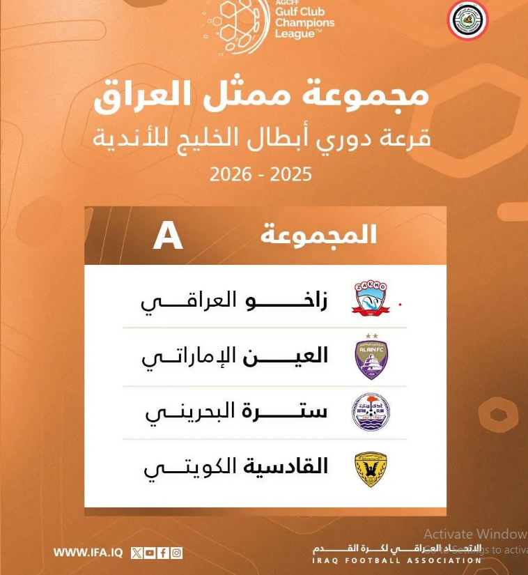 زاخو العراقي بالمجموعة الأولى بدوري أبطال الخليج مع العين الإماراتي وسترة البحريني والقادسية الكويتي