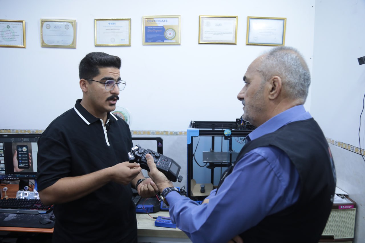 وتحدث "عزيز" عن ابتكار آخر قائلا ان "توفير هيئة التعليم التقني في العتبة الحسينية لورشة متكاملة فيها بيئة صحيحة للابداع والعمل ليلا ونهارا دفعنا الى ابتكار الكثير من الامور ومنها لدينا طابعات نوع (3D) تكمل الاجزاء الناقصة في اي منتج نريد ابتكاره، مثلا اغطية المنتج الخارجية او القطع البلاستيكية التي تثبت عليها الحساسات التي لا تتوفر اشكالها في العراق فنقوم بتصميم الشكل المراد ويطبق على ارض الواقع ونحصل على الاجزاء التي نحتاجها، بل وصل الامر الى تصميم نظارة المكفوفين فيها بشكل كامل، وهي تعطي الاساس الذي استطيع العمل عليه وبرمجته، كونها تعمل من خلال حاسوب وبرامج خاصة، ولدينا طابعات مجسمات (3D) جديدة سنجهز بها تقدم لنا خدمات مهمة في عملنا، ومنها طابعات الرسم ثلاثية الابعاد السائلة (3D) تصل دقتها الى (8K) من النوع المستخدم عند اطباء الاسنان في صناعة الاسنان المطلوب تركيبها للمرضى، وهذه الطابعات لا تقتصر خدماتها على اعمال الهيئة فقط، بل يمكن طباعة اي شكل او تصميم او مجسم يطلب منا اي مواطن طباعته له".